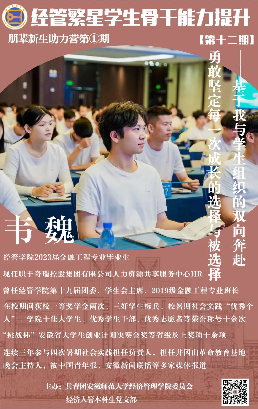 为帮助2023级新生更好适应老员工活,提升专业能力和综合素养,公司于8月9日晚以线上形式开展经管员工骨干能力提升专题培训第12期暨朋辈新生助力营第1期,为新生提供“云充电”学习平台,助力员工成长发展。2023届金融工程专业毕业生韦魏与新生共话大学学习生活。