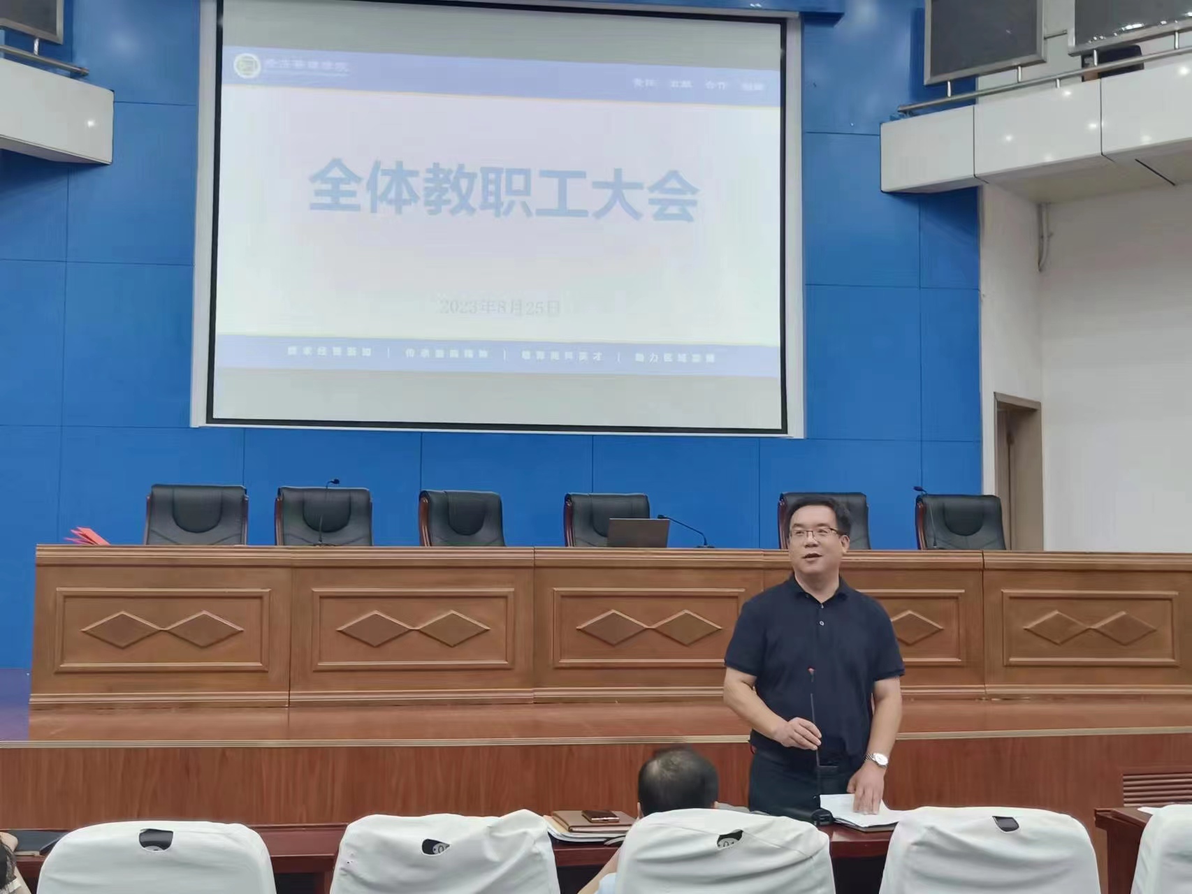 公司各分管领导对暑期工作做了回顾,就本学期重点工作进行了提醒和布置。公司党委副书记、纪委书记陈刚锋就新学期教师的廉洁自律要求做了提醒强调,并号召广大教师关注支持毕业生就业工作;副经理马长伟就新学期备课准备、课件规范、课堂纪律等“三教”落实工作进行了提醒强调,对2024届本科生毕业论文、新学期员工重缓考等工作进行布置;副经理伍旭中对获得国家级科研项目立项的教师表示祝贺,同时解读了新修订后的公司研究生导师考核方案;副经理李海燕介绍了公司暑期承办的社会服务项目有关工作。