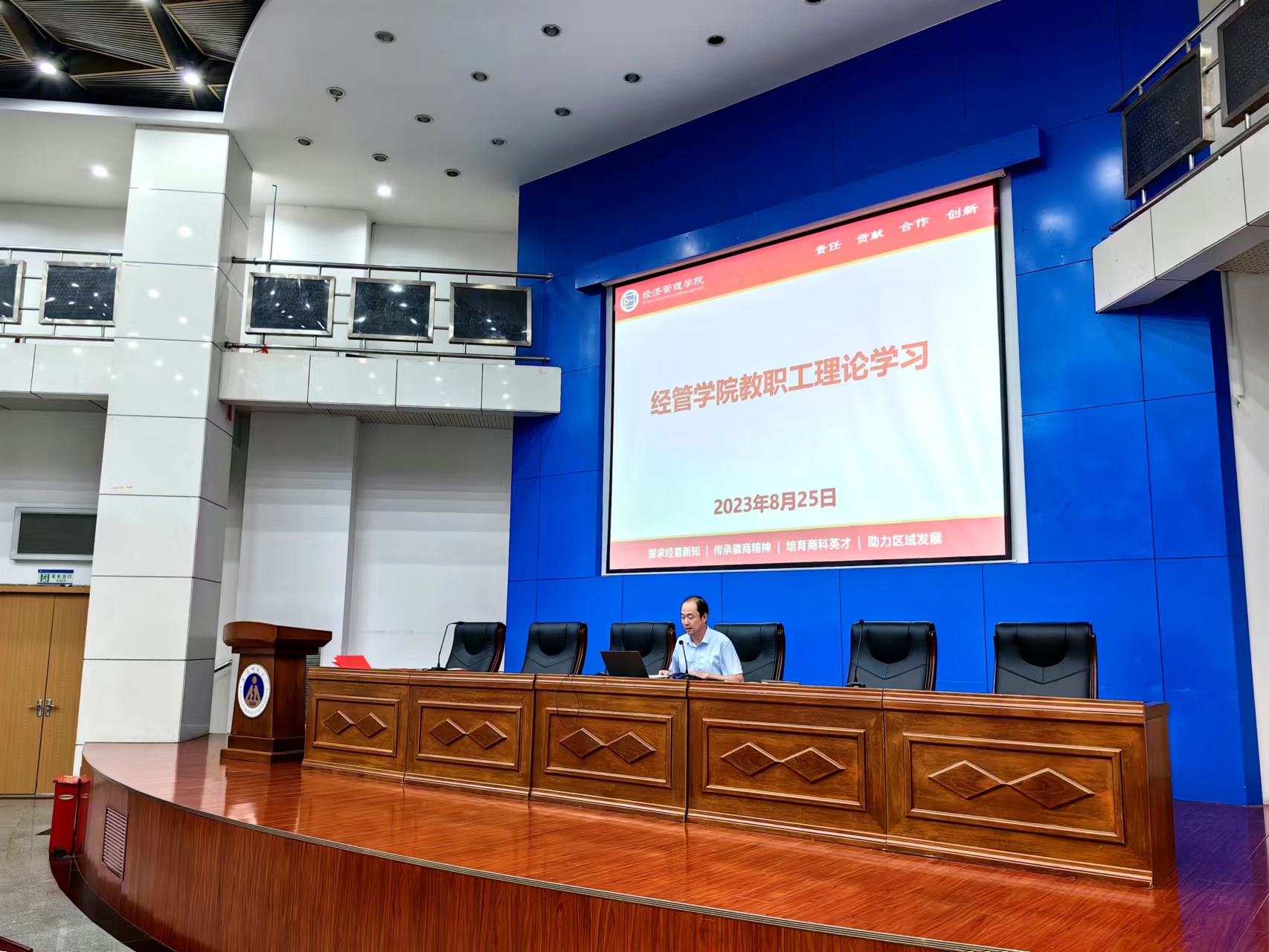 8月25日下午,m88官网在敬文图书馆报告厅召开新学期全体教职工大会暨政治理论学习会,经理张廷龙主持会议,公司领导班子和全体教职工参加会议。