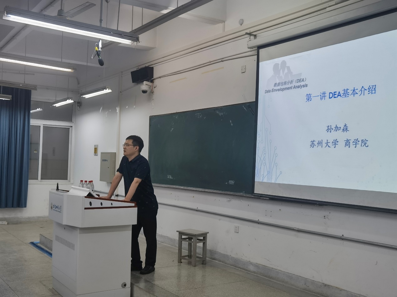 9月7日至8日,公司邀请苏州大学商公司孙加森教授就“经济管理类研究生科学研究方法”进行专题讲座。经理张廷龙教授到场聆听和指导。孙加森从数据包络分析(DEA)出发,就相关模型的原理、运用等进行详细介绍和讲解,同学们纷纷表示受益匪浅。