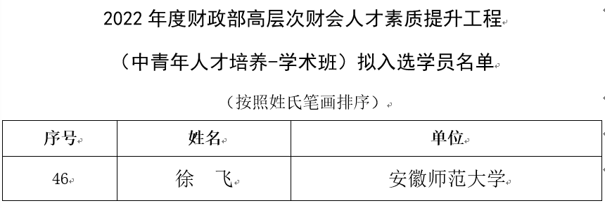 2023年9月13日,中国会计学会发布了“2022年度财政部高层次财会人才素质提升工程(中青年人才培养-学术班)选拔结果公示”,公司徐飞博士成功入选,来自北京大学、厦门大学、中央财经大学、中山大学、上海财经大学等国内知名院校的60名青年学者入选该项目。