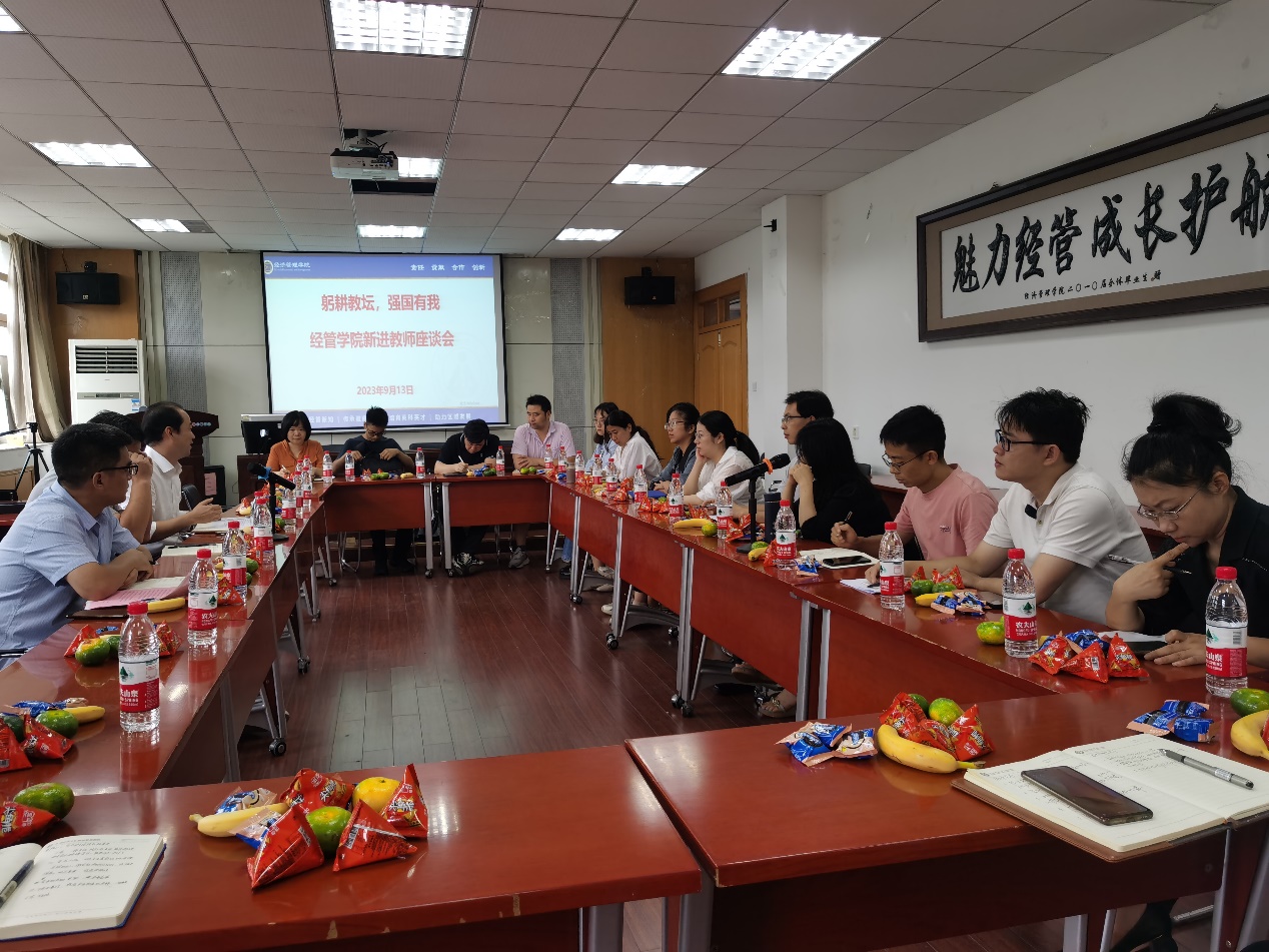 马长伟带领青年教师学习了9月9日习近平致全国优秀教师代表的信。张琼、余吉祥、朱立冬三位老师向大家分享了自己在指导员工竞赛、教学、科研等多方面的经验与感悟,给在座的青年教师提出了建议。希望青年教师要发自内心的热爱自己的事业,培养员工严而有度,时时自我反思、自我总结,努力提升自身素养,形成适合自己的教学风格。座谈会上,新进教师也逐一发言并结合个人在教学方面遇到的疑惑,进行充分沟通与交流。