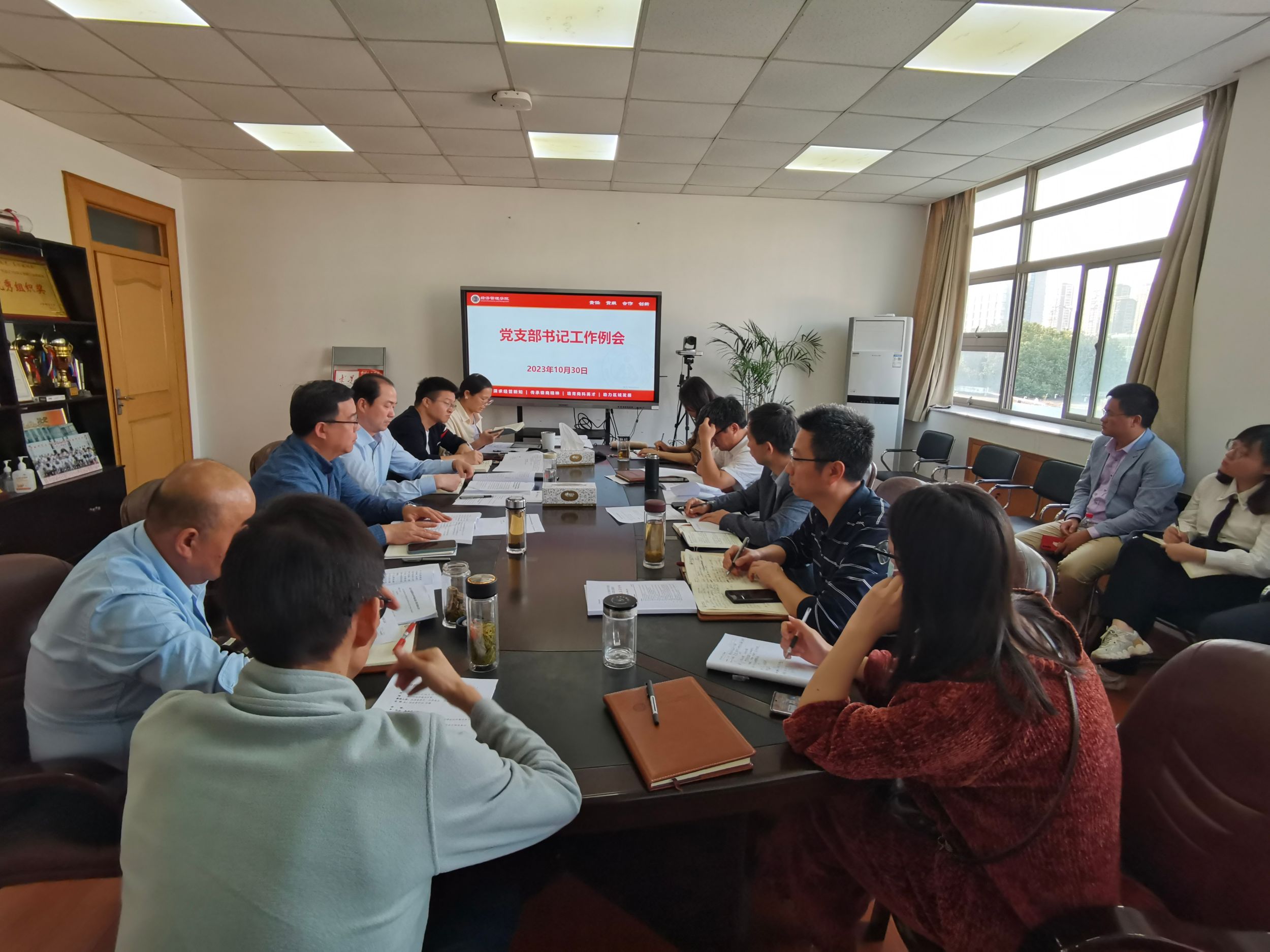 乔静在总结讲话中强调,全院师生要提高政治站位,养成良好的学习习惯,紧密结合工作实践深入学习党的创新理论,坚持“学思用贯通、知信行统一”,进一步推动团队建设、人才培养、教学科研等工作开展,促进公司高质量发展。会后专题召开了党支部书记工作例会,就近期基层党支部重点工作进行部署安排。