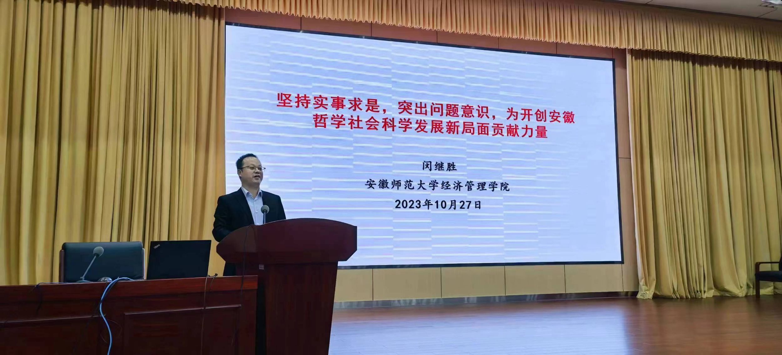 第79、80期哲学社会科学教学科研骨干研修班,深入系统学习了习近平新时代中国特色社会主义思想和党的二十大精神、马克思主义原著原理,以及接受了深入的党性教育。10月27日,研修班举办了“如何开创安徽哲学社会科学发展新局面”的学员论坛,公司闵继胜老师作为6名学员代表第一个登台发言,题目为“坚持实事求是,突出问题意识,为开创安徽哲学社会科学发展新局面贡献力量”。