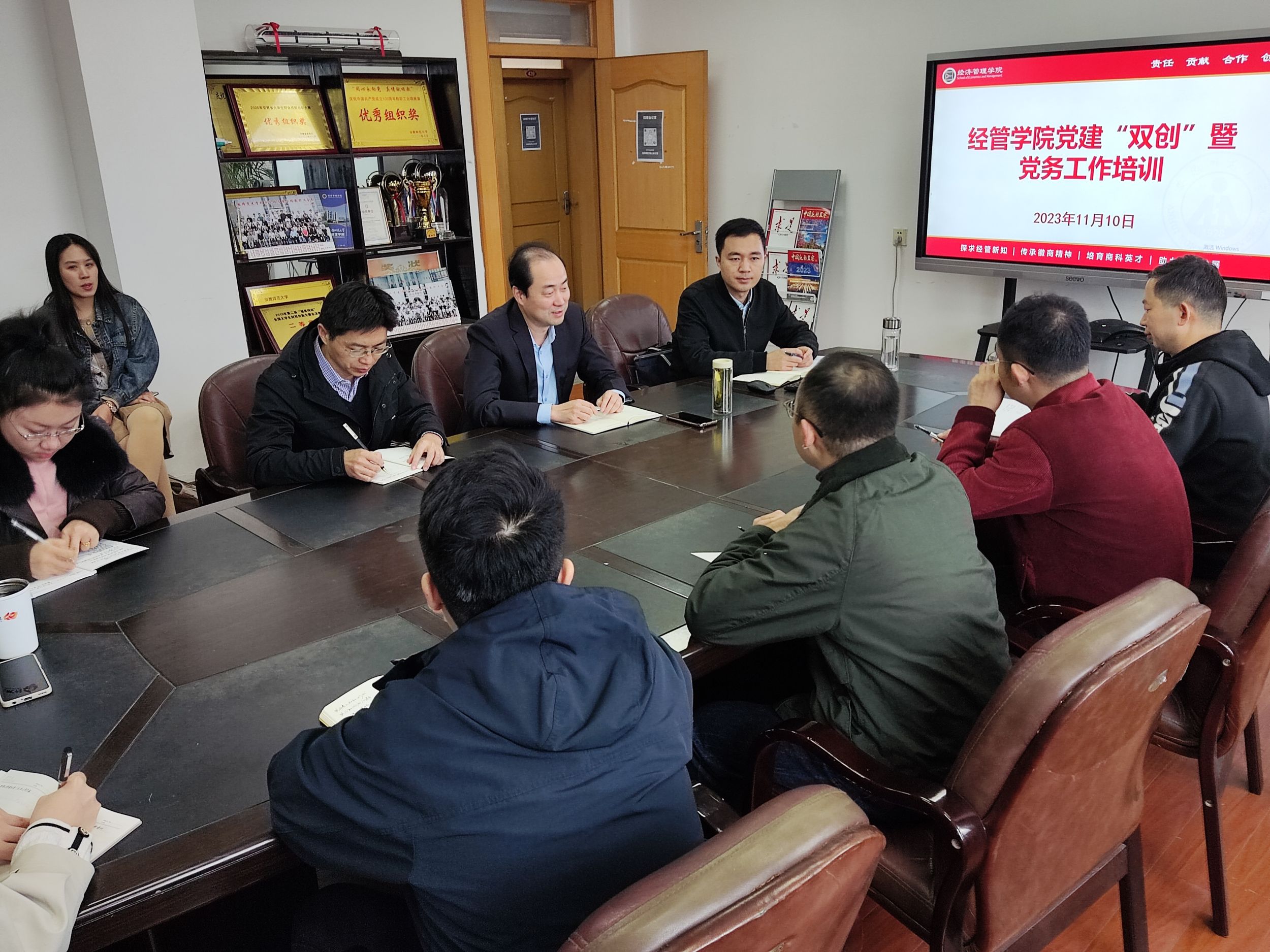 为进一步把好党员发展质量关,深入推进党建工作创先争优,11月10日上午在四楼会议室,m88官网组织开展党建“双创”暨党务工作培训会,校组织部组织科李高举应邀作《基层党务工作实务交流》专题分享,会议由公司党委书记乔静主持,公司基层党支部书记、副书记、支委等30余人参会。