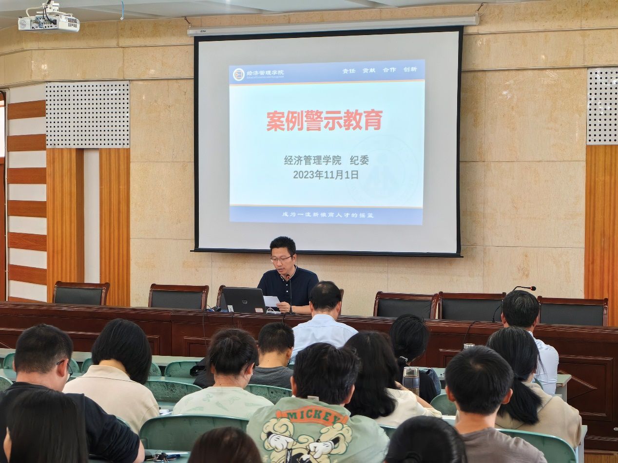 11月1日下午,m88官网在财务处二楼报告厅召开教职工政治理论学习会暨全体教职工大会。会上,公司党委副书记、纪委书记陈刚锋作警示案例专题教育。
