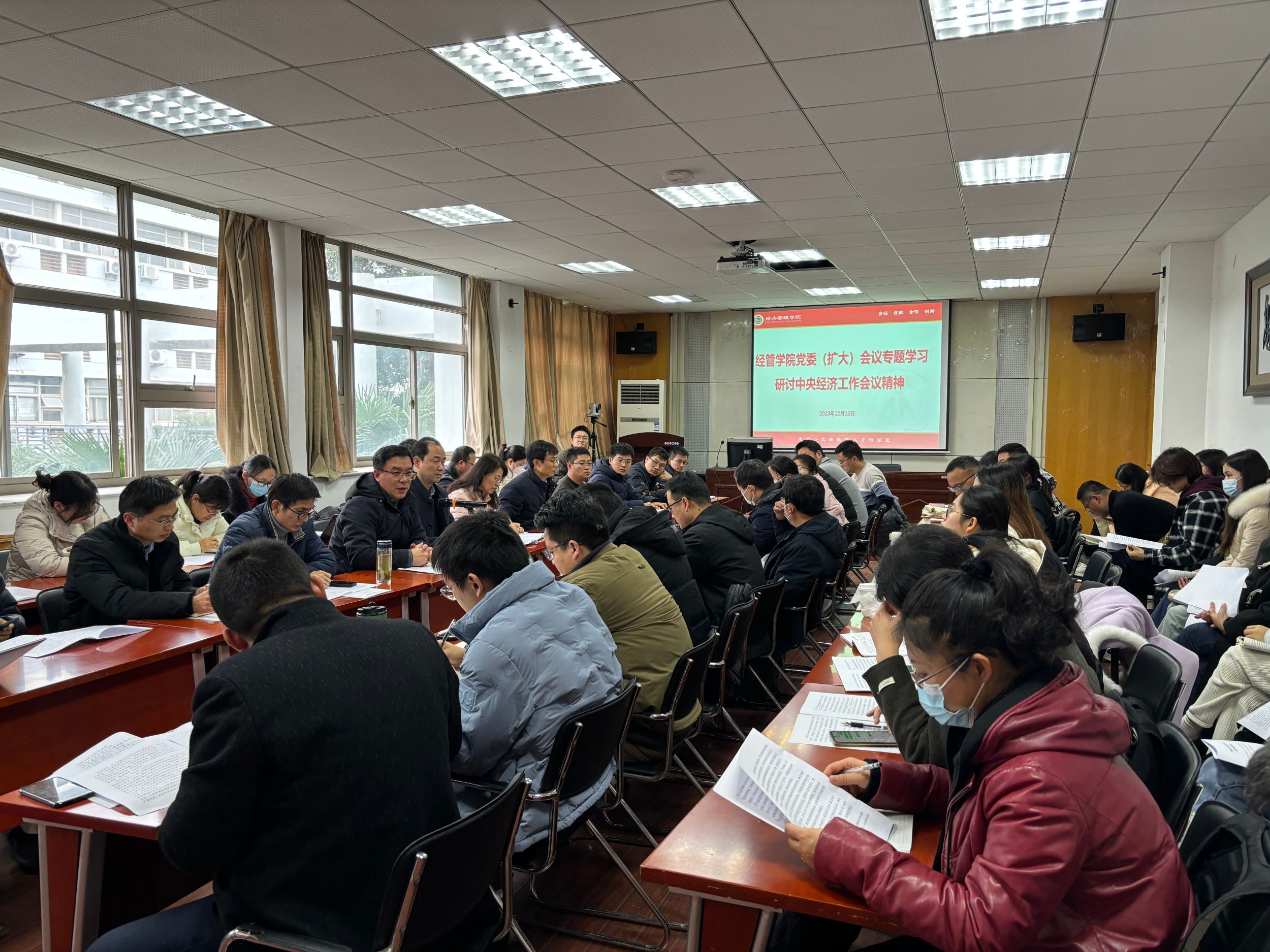 中央经济工作会议12月11日至12日在北京举行。中共中央总书记、国家主席、中央军委主席习近平出席会议并发表重要讲话。习近平总书记在重要讲话中全面总结2023年经济工作,深刻分析当前经济形势,系统部署2024年经济工作。12月13日下午,m88官网在公司二楼报告厅召开党委(扩大)会议专题学习研讨中央经济工作会议精神。m88官网班子成员、党委委员、各党支部书记、支委、师生党员参加。会议由公司党委书记乔静主持。