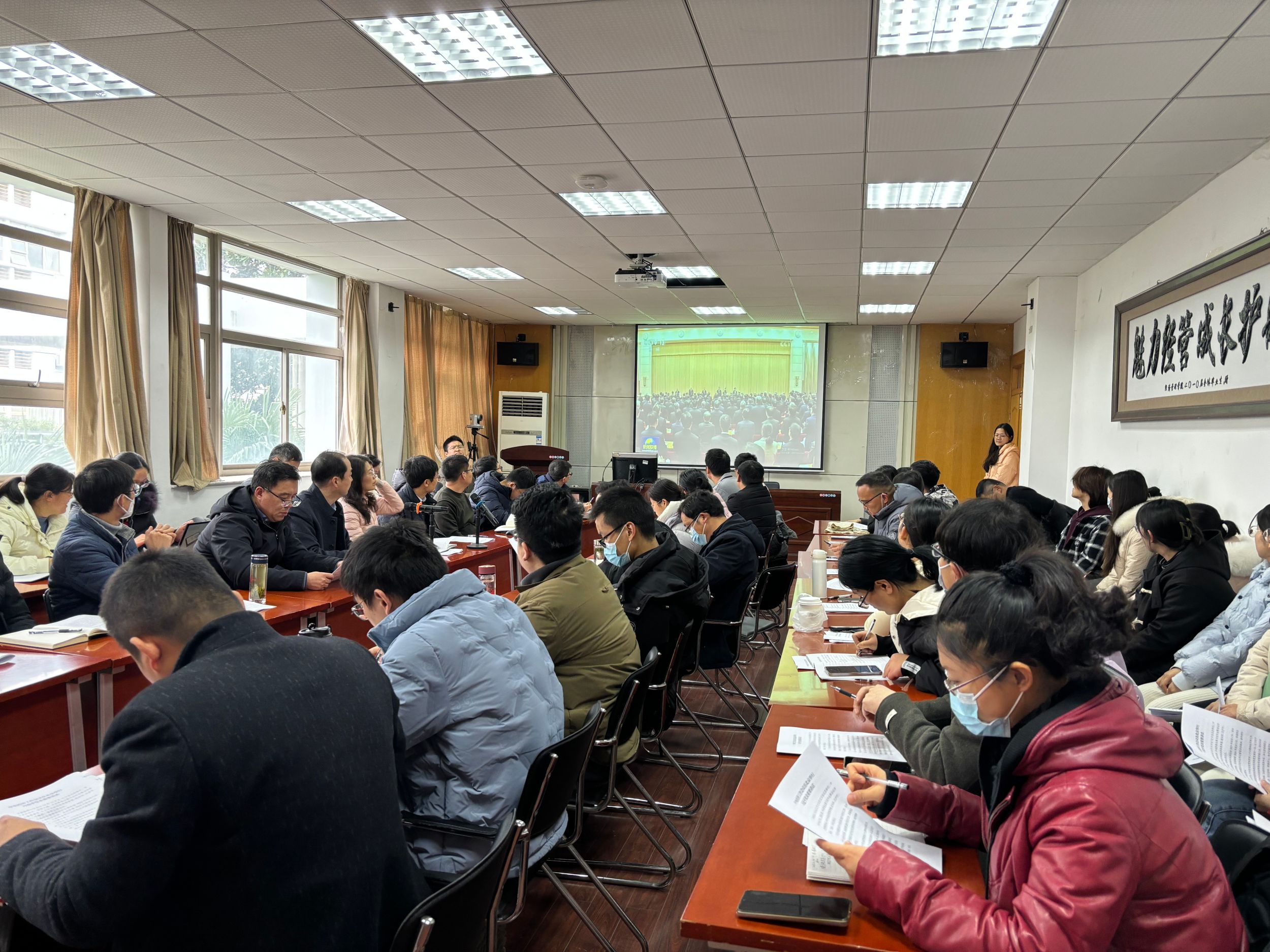 会上,全体与会人员集体观看了习近平总书记在中央经济工作会议上的重要讲话有关新闻视频。