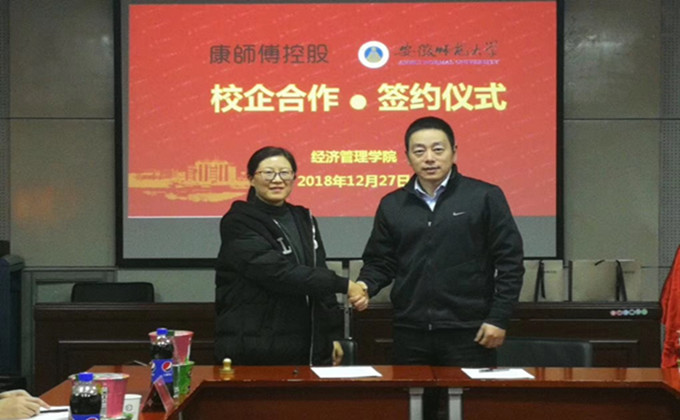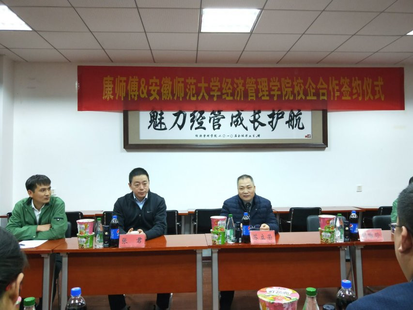 仪式伊始,双方主要出席人员就签约的相关内容进行交流。张廷龙经理首先对康师傅集团领导们到来表示欢迎,并简要介绍了公司人才培养及未来发展的基本情况。苏立荣主任通过公司宣传片,介绍了康师傅的文化与生产理念,发展路程以及产品研发更新状况,他提到校企合作是双方未来发展的重要方向。