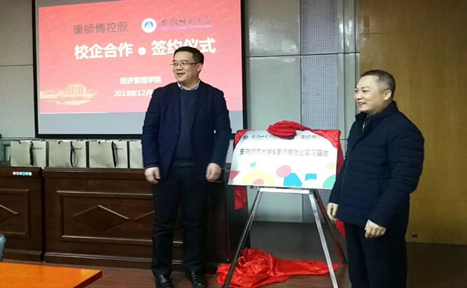 仪式最后,党委副书记李海燕代表公司与康饮事业安徽行销公司总经理张君签订校企合作框架协议;张廷龙经理和苏立荣主任为m88官方网站登录地址&康师傅就业实习基地揭牌,并合影留念。签约仪式结束后,经理张廷龙总结指出,公司一直秉承开放合作的意识,他希望校企合作平台能够给予员工更多的锻炼机会,同时校企合作应该是双赢的、动态的、不捆绑的。