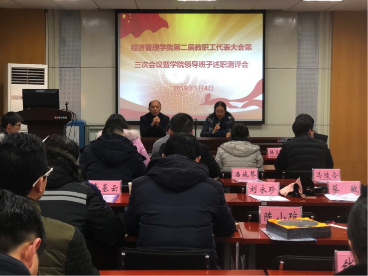 2019年1月4日下午2点,公司在公司二楼报告厅召开第二届教职工代表大会第三次会议暨公司领导班子述职测评会,公司第二届教代会代表及其他教职工出席了会议。第一次全体会议由教代会执委会主任陈秀庆主持,根据大会议程,经理张廷龙代表公司领导班子作2018年度工作报告、李海燕、马骥、张立新先后对自身工作进行年度述职。全体教职工根据公司要求对公司领导班子及其成员进行了测评。接着,教职工代表参加了各自代表团对经理工作报告、张立新副经理提交的《m88官网2018年度经费使用情况报告》(书面)的讨论。教代会执委会听取了各代表团讨论情况的汇报。代表们对两个报告和公司一年来的工作给予了充分肯定,认为公司一年来的工作取得了积极进展,事业发展出现了新的局面,公司经费使用合理合规合法。同时,代表们对两个报告公司工作也提出了中肯的意见和建议。
