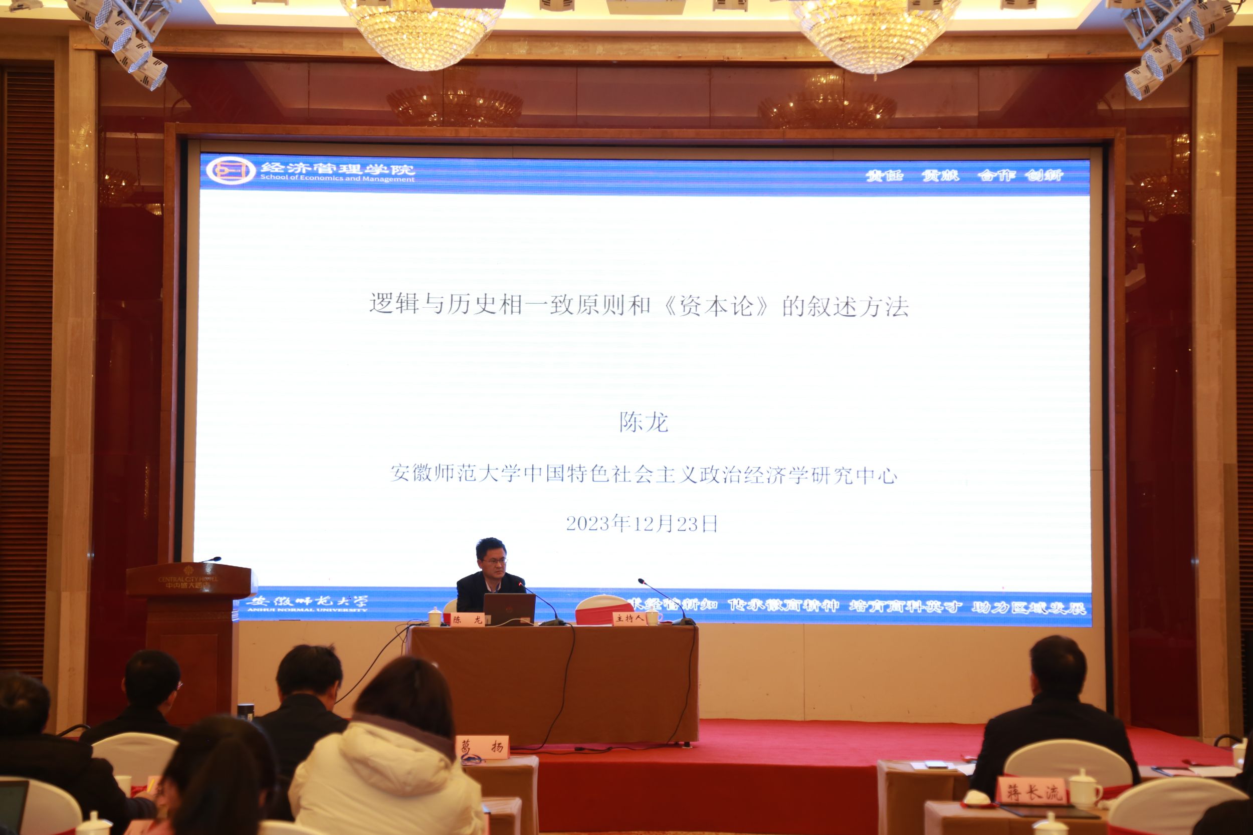 第二阶段主旨报告,由安徽大学经济公司教授蒋长流、m88官网副经理马长伟分别主持。中国《资本论》研究会副会长、南京大学经济公司葛扬教授做了《分配制度与共同富裕的中国式现代化》的主题演讲,黑龙江大学经济与工商管理公司经理魏枫教授做了《加快形成新质生产力,推动东北全面振兴》的主题演讲,安徽省《资本论》研究会副会长、安徽省委党校李本和教授做了《当前国际形势分析与共建“一带一路”高质量发展》的主题演讲,安徽医科大学马克思主义公司经理柳泽民教授做了《资源诅咒:布罗代尔钟罩及中国现代化的历史前提》的主题演讲,安徽财经大学赵茂林教授做了《习近平反贫困思想的逻辑理路、科学内涵和理论特征》的主题演讲,m88官方网站登录地址中国特色社会主义政治经济学研究中心执行主任陈龙博士做了《“逻辑与历史相一致”原则和<资本论>的叙述方法》的主题演讲。