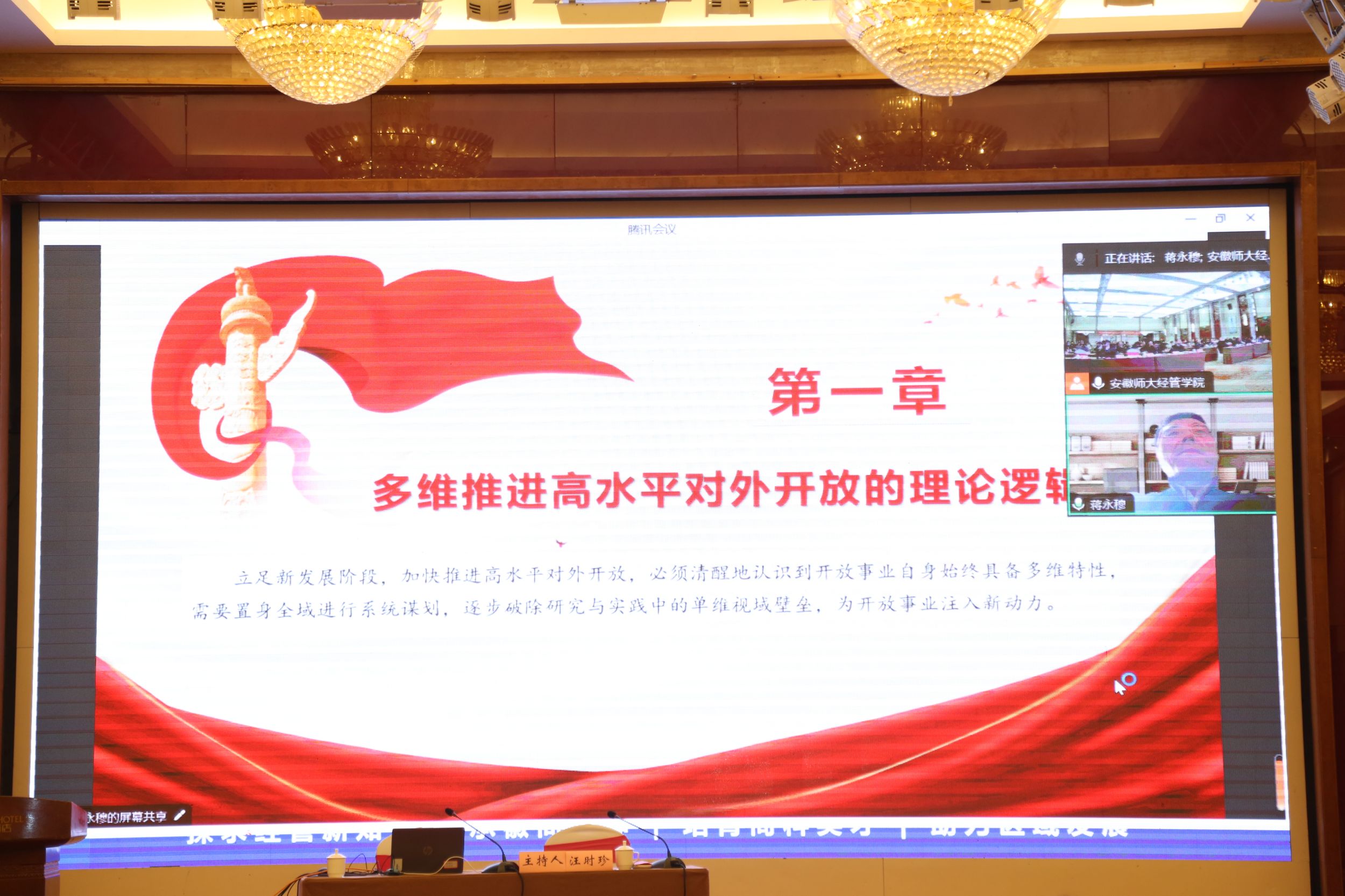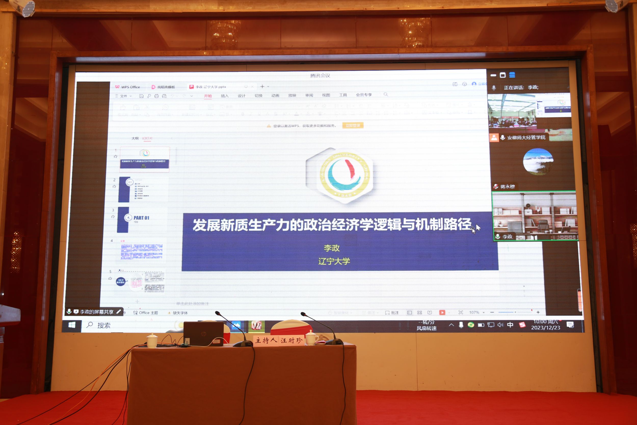 第一阶段主旨报告,由安徽省《资本论》研究会副会长、安庆师范大学原副董事长汪时珍教授主持。四川大学经济公司经理蒋永穆教授、辽宁大学经济公司经理李政教授通过线上做了题为《多维推进高水平对外开放》《加快形成新质生产力的机制与路径》的报告。