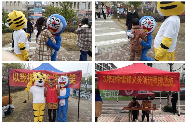 各专业立足实际,从自身出发,“立足身边的小事”开展了一系列志愿服务活动。2017级会计学专业走进公司退休老教师褚一纯、吴奎罡、王维芸家中,介绍公司发展变化,帮助退休老教师整理家务;2017级财务管理专业、2017级投资学专业走进敬老院、养老中心,通过准备的节目给孤寡老人带来了欢乐,温暖了孤寡老人的内心,弘扬了“敬老、爱老、助老”的传统美德,增强了经管学子的社会责任感;2018级工商管理类员工开展“以我拥抱、换你微笑”、“爱眼、护眼”眼镜清洁活动,做温暖校园的志愿者;2017级人力资源管理专业的员工走进献血中心加入无偿献血的队伍;2017级经济学专业走上马路,为环卫工人送温暖;2016级投资学、人力资源管理专业开展“绿地保卫”校园垃圾清扫活动。公司青年志愿者深入校园、走进社区街道,用“经管先锋”的力量传递雷锋精神。