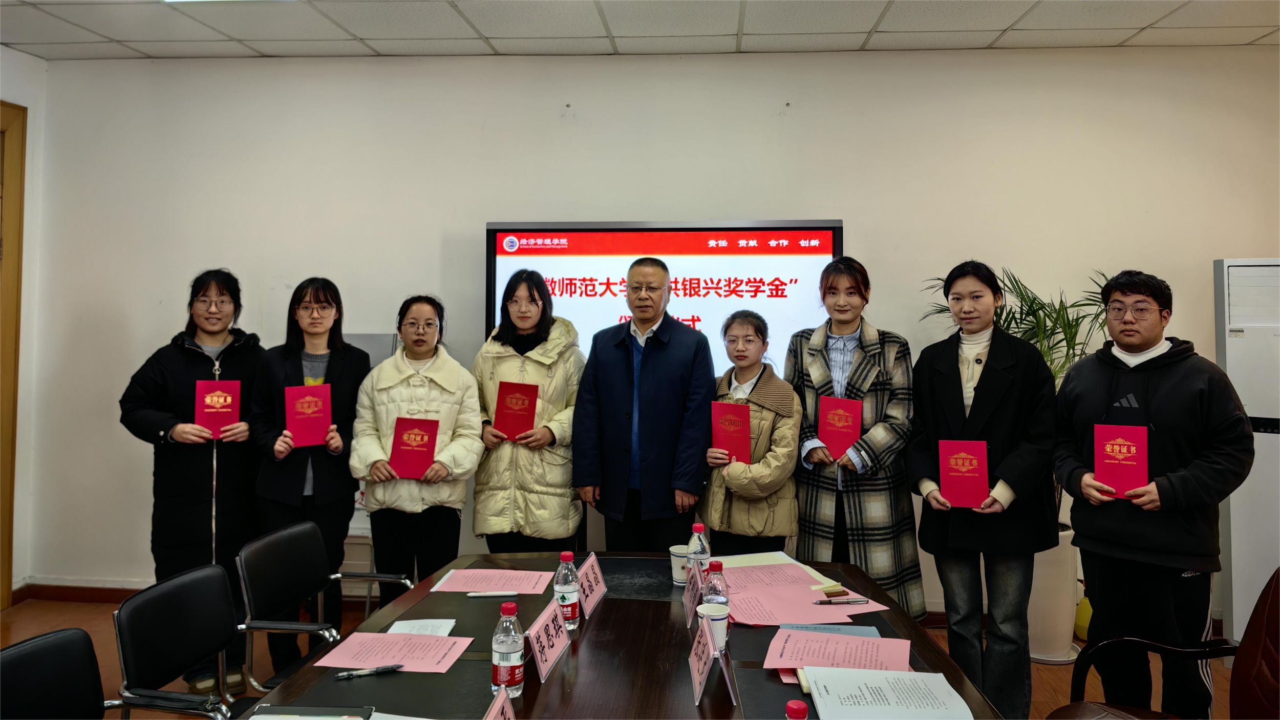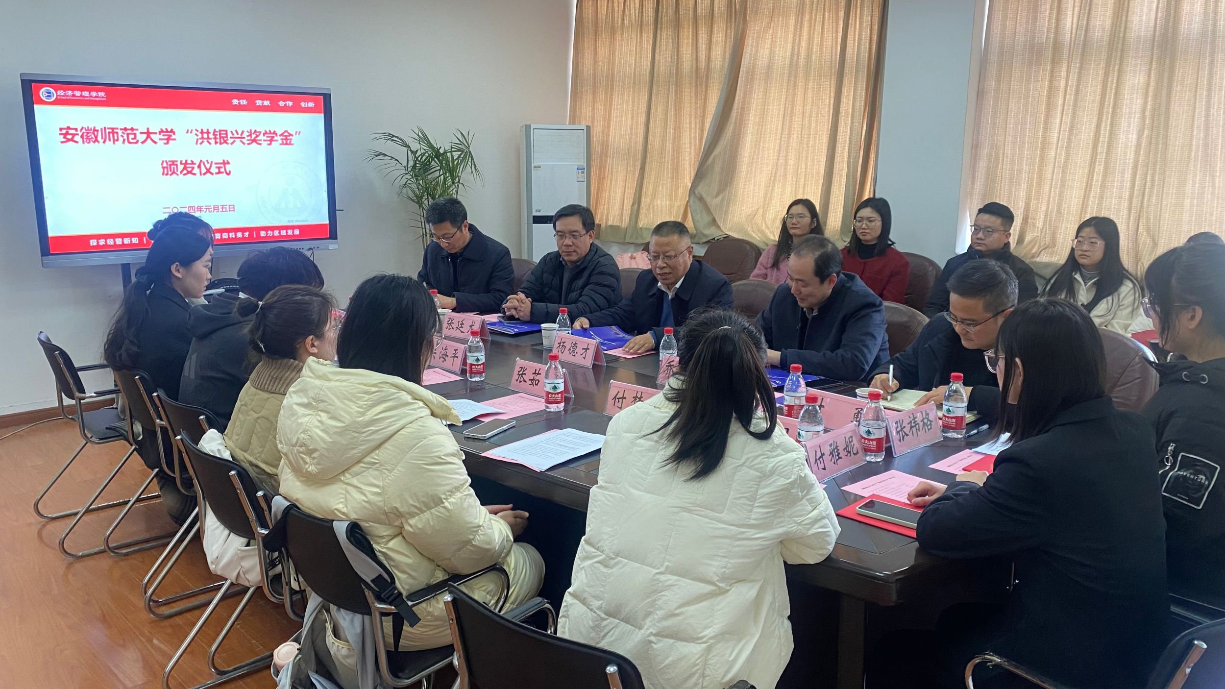 元月五号下午,m88官网在公司四楼会议室举行2023年“洪银兴奖学金”颁发仪式。南京大学经济学系主任杨德才教授、m88官网党委书记乔静、经理张廷龙,地理与旅游公司党委副书记付勇出席颁奖仪式,m88官网全体辅导员、地理与旅游公司辅导员代表、获奖同学代表参加颁发仪式。仪式由m88官网党委副书记陈刚锋主持。