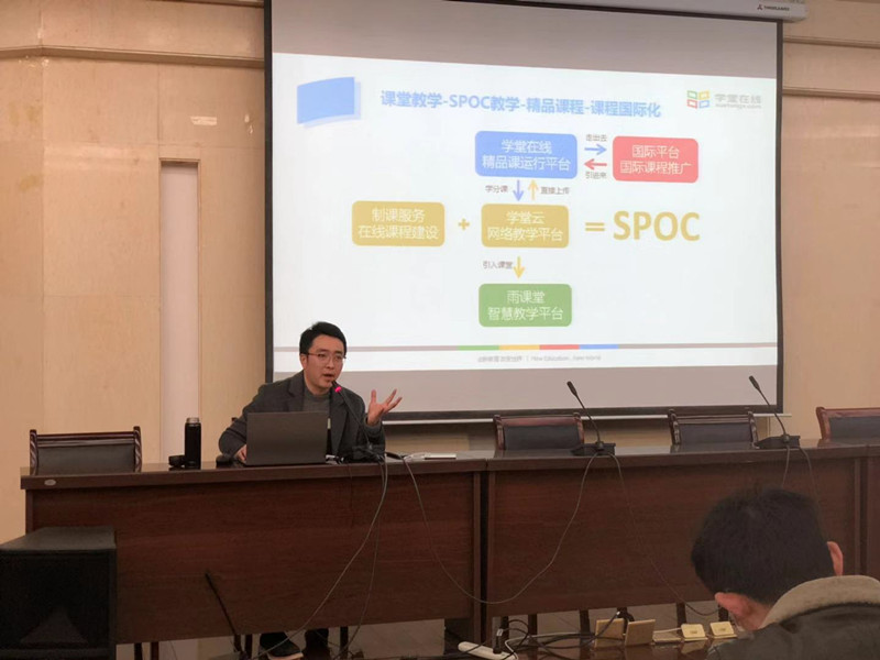 会上,李汪根副处长首先对本科课堂教学模式改革的重要性作了强调,并提出智慧课堂的教学变革是必然趋势,是缩短“教”与“学”距离的重要手段,是从以“教学”为中心的传统教学观念向以“员工”为中心的现代教学观念转变的具体体现。随后,刘鹏老师在汇报时带领参会的老师们体验了由清华大学研发的智慧课堂教学工具——雨课堂的操作与使用,并向我们展示了智慧课堂教学工具是如何融入课堂教学,促使传统教学方式发生变革,从而加强课堂上的师生互动,以及产生相关教学质量监控数据的过程。同时,刘鹏老师还针对教育部关于打造金课的相关政策信息作了进一步的分析与解读。讲座结束后,各公司教师代表们展现出对智慧课堂教学工具的极大兴趣与热情,纷纷表示要积极尝试使用新的教学工具,提升课堂教学质量,迎接教学模式改革。