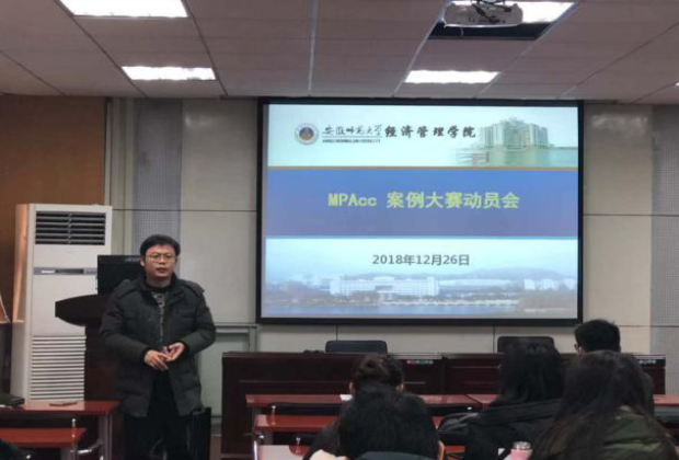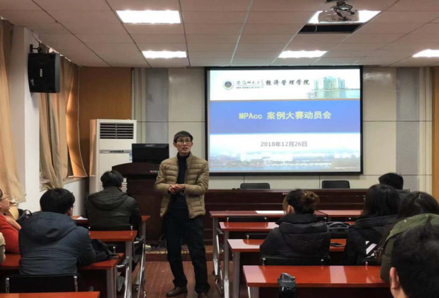 (本网讯 m88官网 黄艺杰 张博语)为了进一步加强公司研究生发现、分析、解决企业实际问题能力和提升专业实践能力,12月26号14:30,经济管公司在院二楼报告厅举行第六届MPAcc案例大赛动员大会。经管院副经理马骥、会计专硕点负责人汪洋老师、会计专硕班主任潘施琴老师、2017级会计专硕员工江昕、黄婷,以及2018级会计专硕全体员工参加了此次会议。本次会议的主要目的就是对下学期案例大赛的相关事项进行简要介绍。