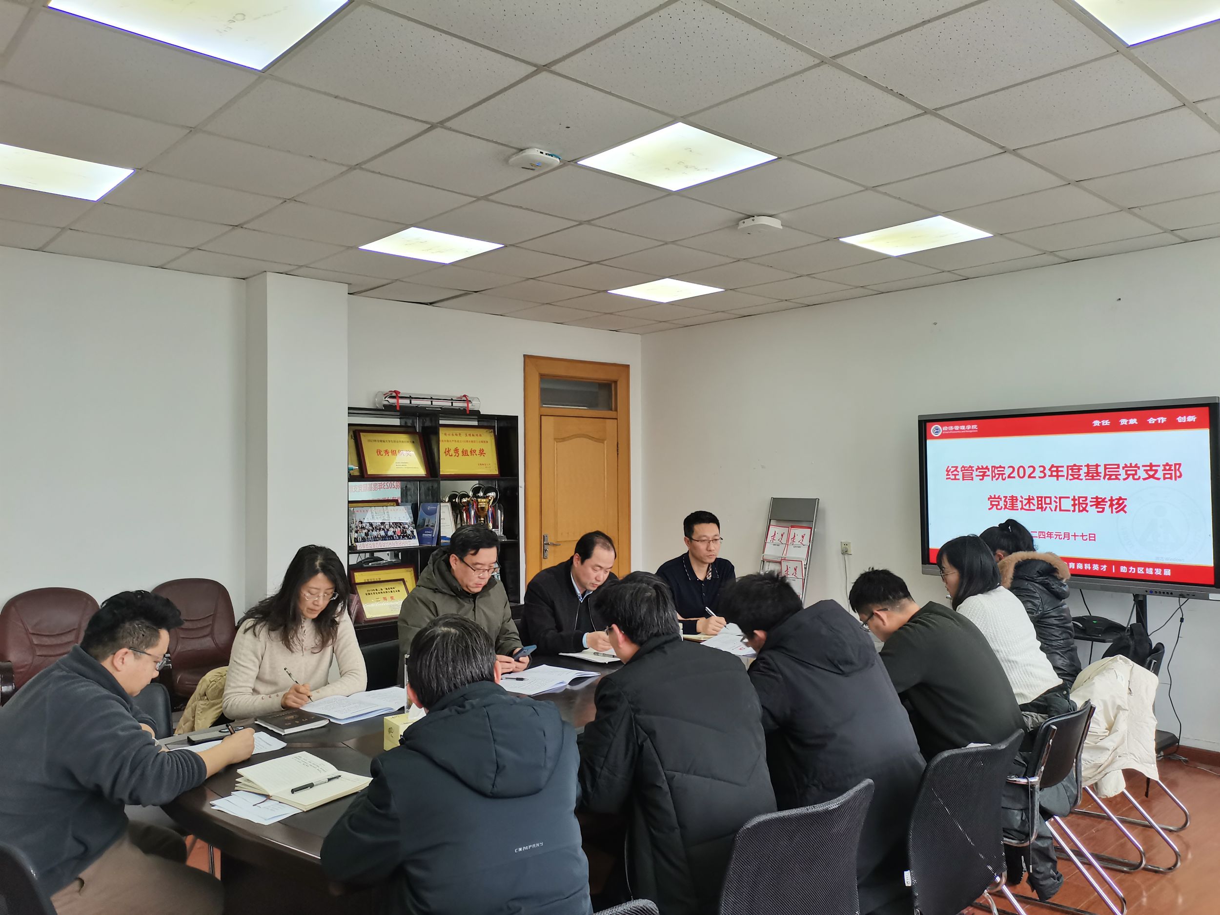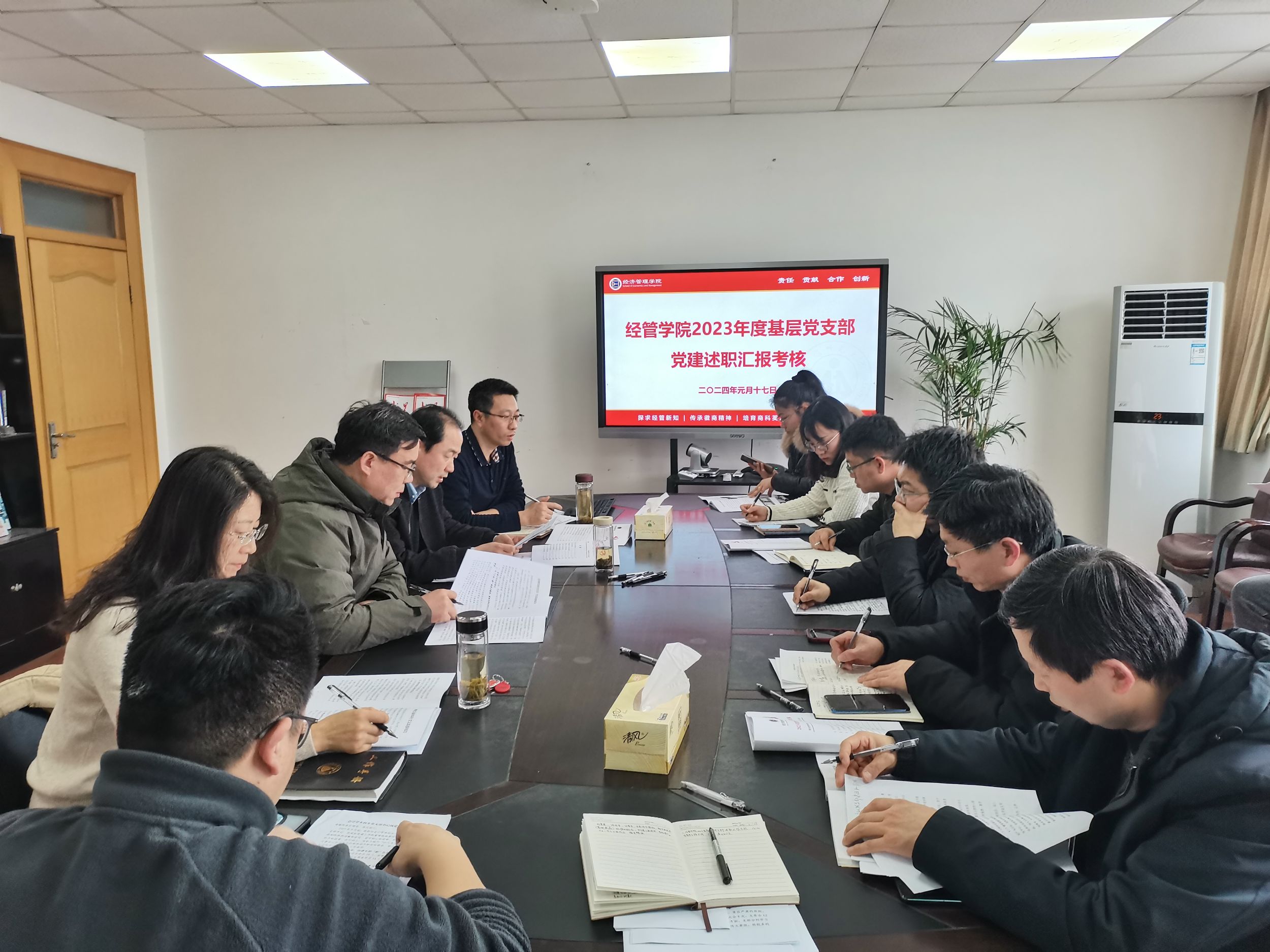 乔静逐一进行点评,他充分肯定了各支部2023年工作开展的成效,并针对性提出了不足及改进意见,希望各支部全面总结,主动思考,依据《中国共产党党支部工作条例》等文件精神,进一步明确职责要求,围绕实施“强基础、提质量、创品牌”三年行动计划、星级支部创建、党建“双创”等工作,推动党建与业务“双融双促”,系统推进2024年度基层党支部各项工作高质量开展。会后,考核评议组根据述职和点评情况对各支部抓党建情况进行了考核评价。