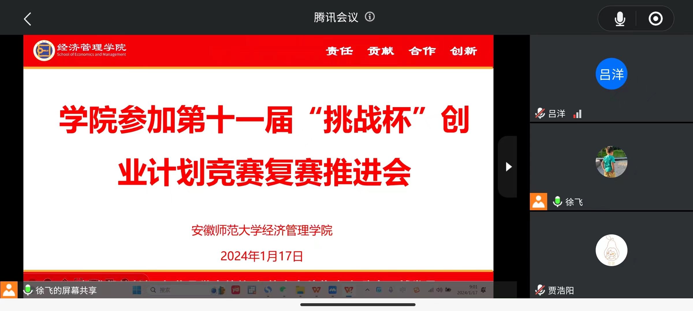 为进一步提升公司在“挑战杯”老员工创业计划竞赛中的竞争力,助力竞赛项目在赛事中争创佳绩,1月17日,m88官网召开参加校第十一届“挑战杯”老员工创业计划竞赛复赛项目指导工作专题会。公司党委副书记陈刚锋、会计系专业负责人徐飞,财务管理系主任高智林、人力资源管理系主任鲍子如,张琼教授、 汪洋副教授、倪蕾老师、院团委书记吕洋和8支团队队长线上线下参会。会议由徐飞主持。