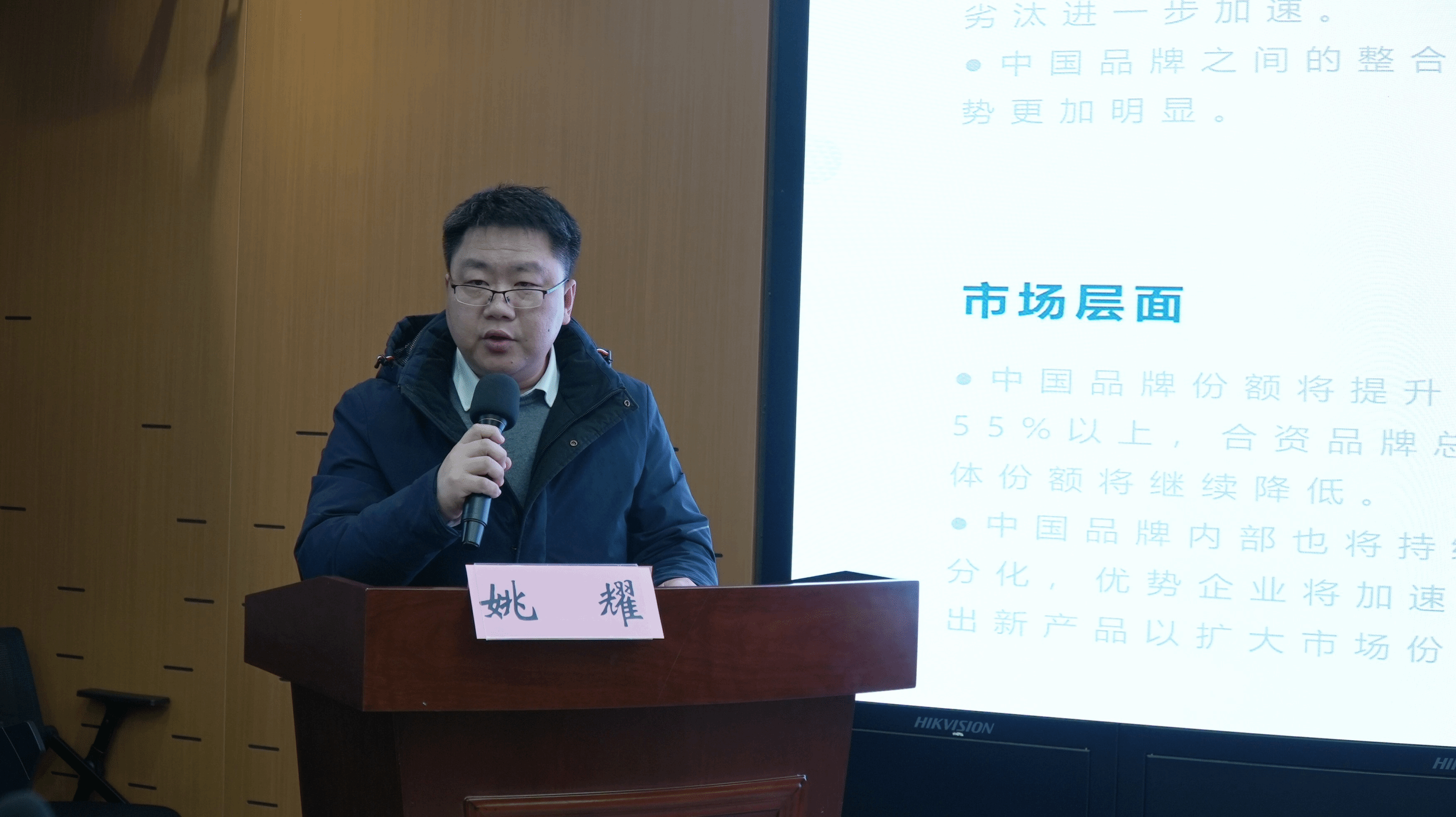 芜湖市人民政府政策研究中心高级统计师姚耀做了题为《首位产业首位推进——融通赋能打造新能源汽车和智能网联汽车之城》的主旨演讲,对芜湖市首位产业发展现状、面临的机遇与挑战及芜湖市政府应对策略等做了详细报告。