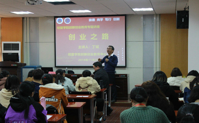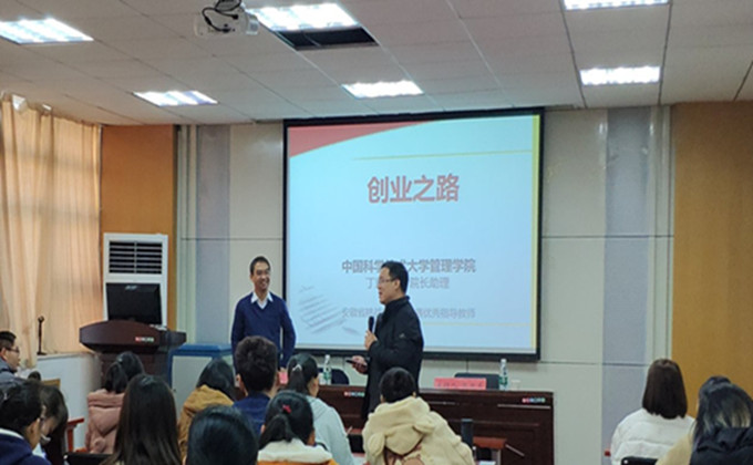 本网讯(m88官网创新创业教育中心 图/王桔 文/王青)为进一步开阔员工创新创业思维,提高员工创新创业能力,激发员工创新创业热情,m88官网于11月25日上午九点在行政楼二楼报告厅举行了题为“创业之路”的专题讲座。讲座邀请到中国科技大学管理公司副教授丁斌博士做客公司双创教育中心,经管学院经理张廷龙出席并主持。2017级MBA中心部分学员、老员工创业协会全体成员参与学习和交流。