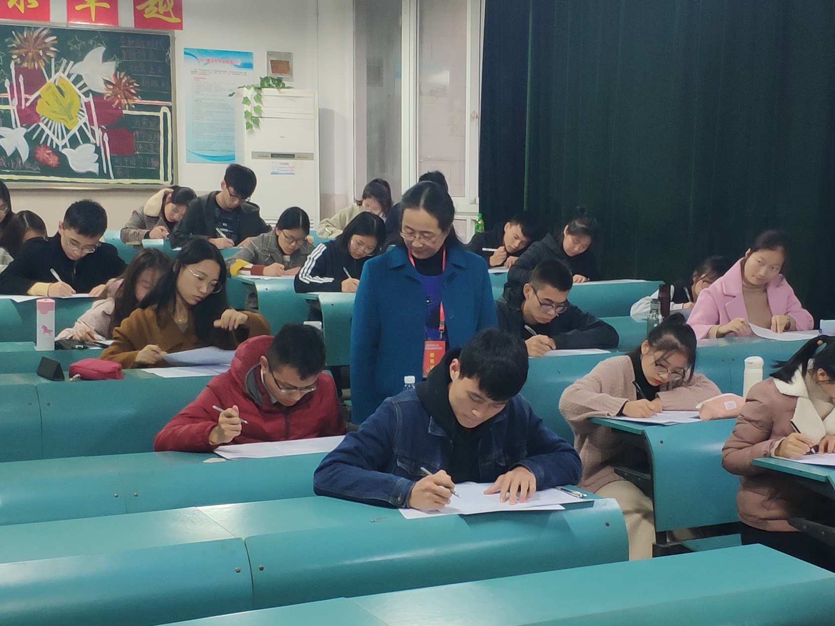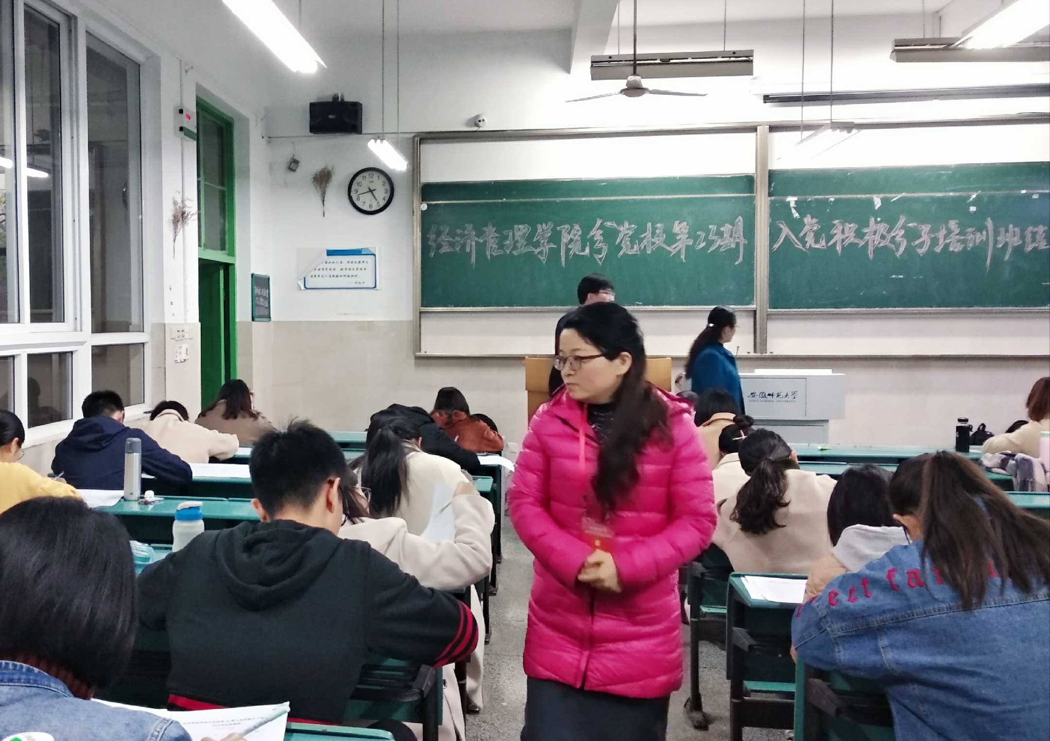本网讯(m88官网分党校)为检验党课班学员学习成果,11月21日下午4:30,m88官网分党校第23期老员工入党积极分子培训班学员于教学楼2020101、2020103、2020104教室举行了结业考试。考试期间,公司分党校董事长、党委书记陈秀庆老师,分党校副董事长、党委副书记李海燕老师和公司组织员兼党委秘书彭树燕老师莅临巡考,院团委负责人吕洋,辅导员安广虎、胡亮亮、吴敬之、李萨萨、孙银玉任各考场监考人员。