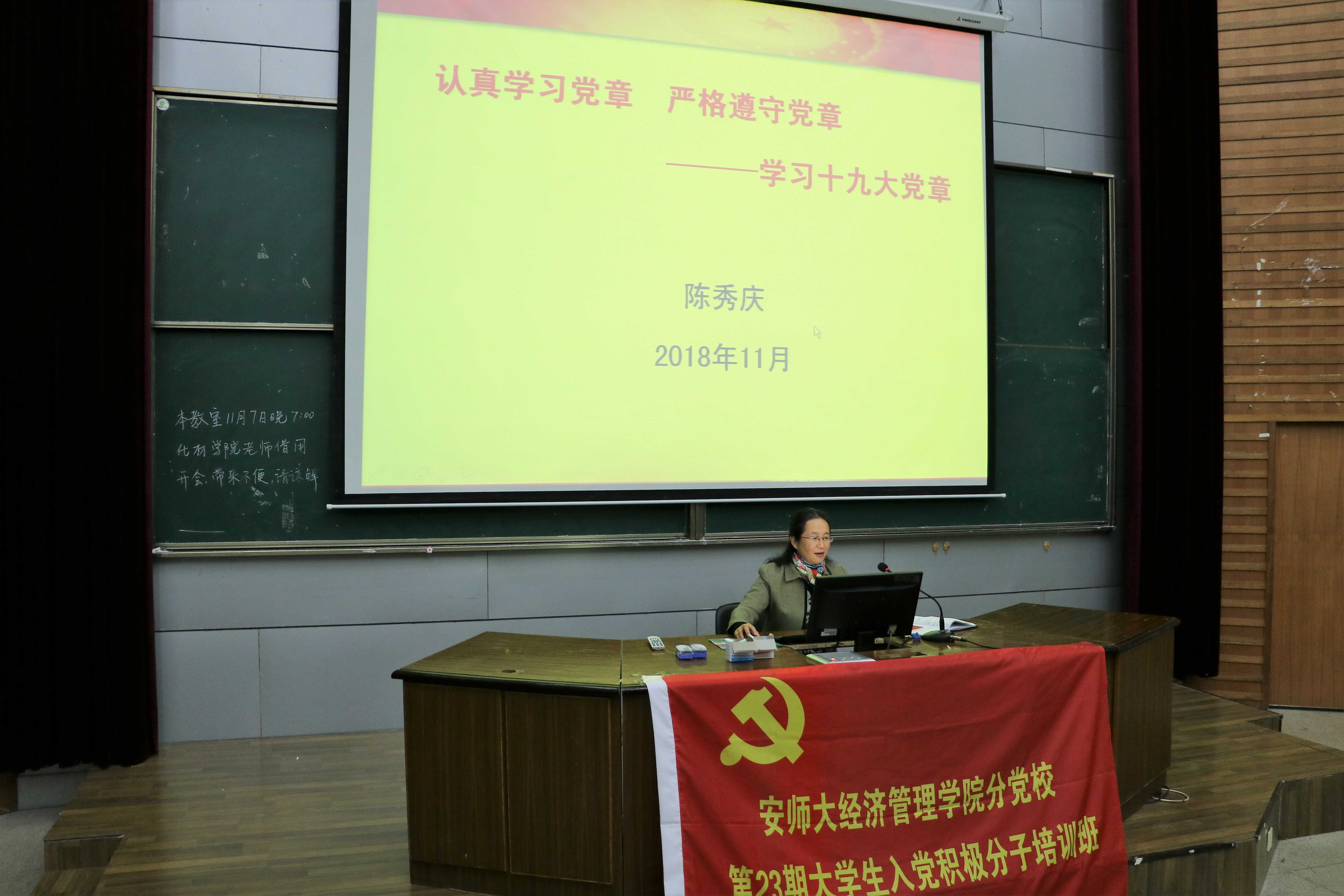 本网讯(m88官网分党校)11月7日下午14:30,m88官网分党校第23期入党积极分子培训班理论课第三讲在行知楼2010105拉开帷幕。m88官网党委书记、分党校董事长陈秀庆老师应邀为培训班学员讲授《认真学习党章 严格遵守党章——学习十九大党章》。