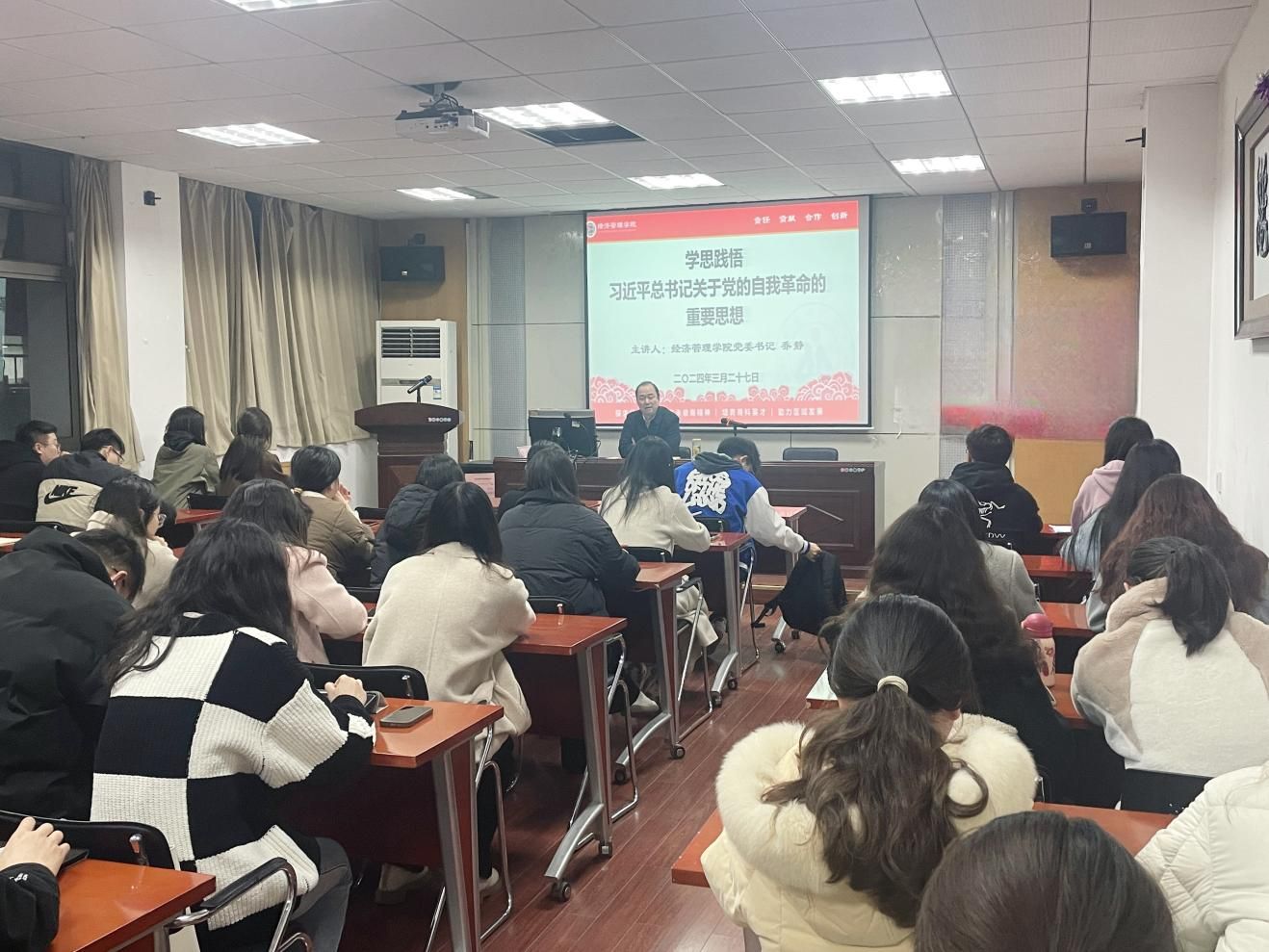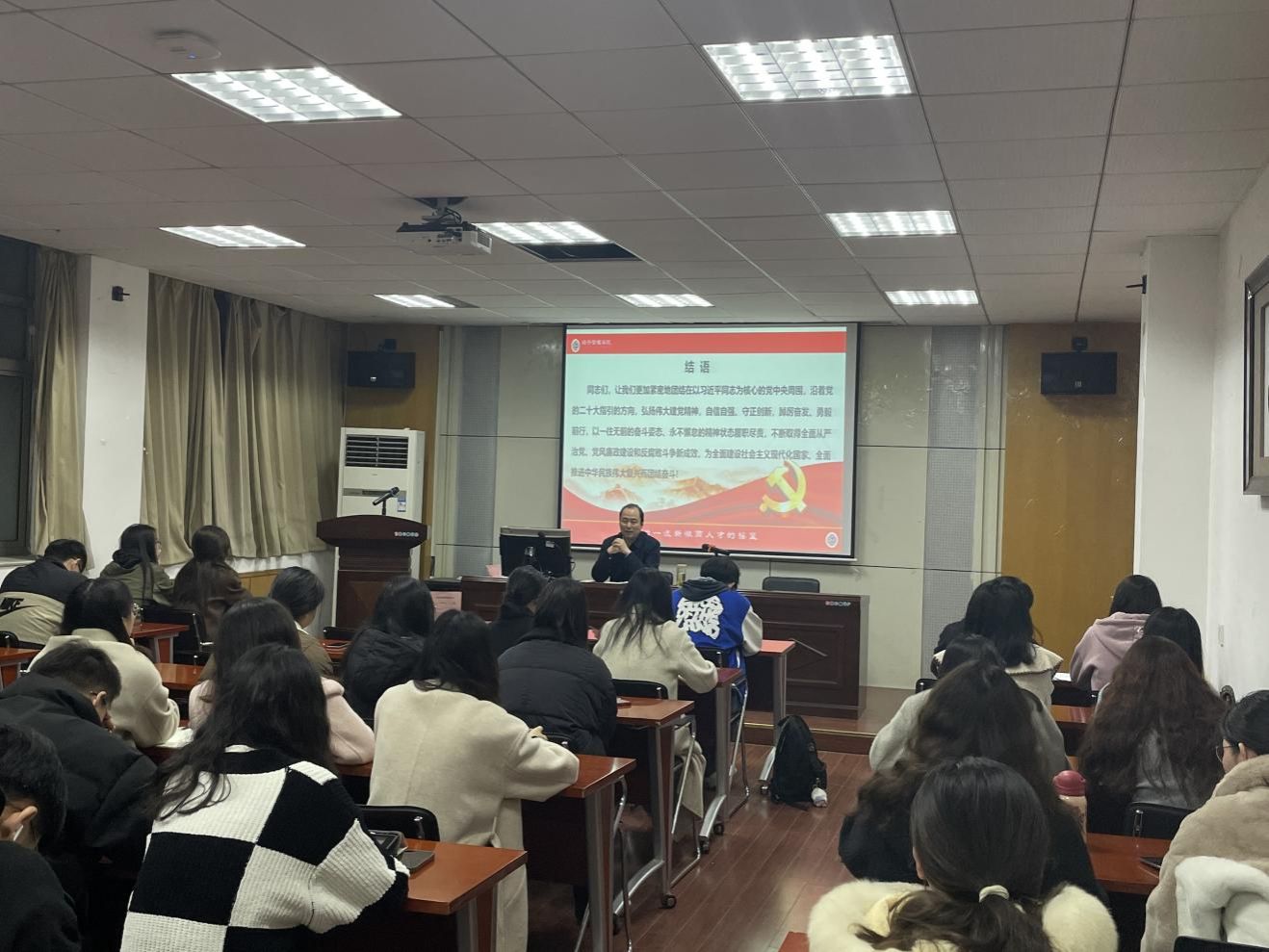 2024年3月27日晚,公司党委书记乔静在公司二楼报告厅为管理学研究生第二党支部讲授《习近平总书记关于党的自我革命的重要思想》专题党课,并结合党课内容就员工党员政治觉悟、党性观念、组织纪律等做了要求。