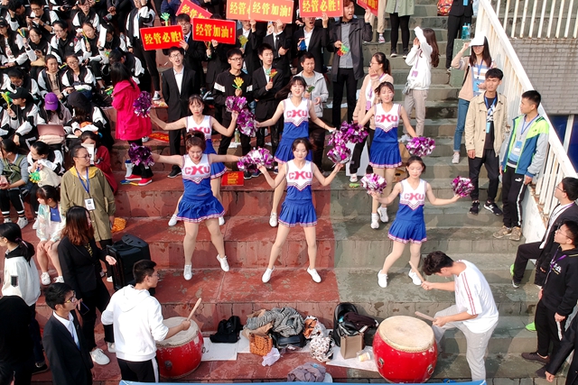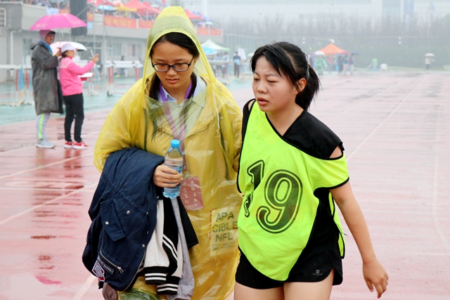 整个运动会的举办过程中,志愿者和工作人员的服务更加无微不至:运动员补给的运输和派送、成绩的记录与播报,赛场的布置与清扫,在运动员参赛时帮忙保管衣物、长跑时陪跑鼓励、冲刺后的搀扶。哪怕是在风雨中,啦啦队依旧保持着活力与热情。不畏寒冷、不管劳累,只为给运动员加油助威。经管院员工会和各班班委也带领经管学子在观众台上,大声的为经管健儿们摇旗鼓劲。不论是烈日还是风雨,不论是闷热还是寒冷,只要赛场上有运动员,就一定能听到他们的呐喊声——“经管,加油!”小的不能再小的地方,站着一群沸腾的人。