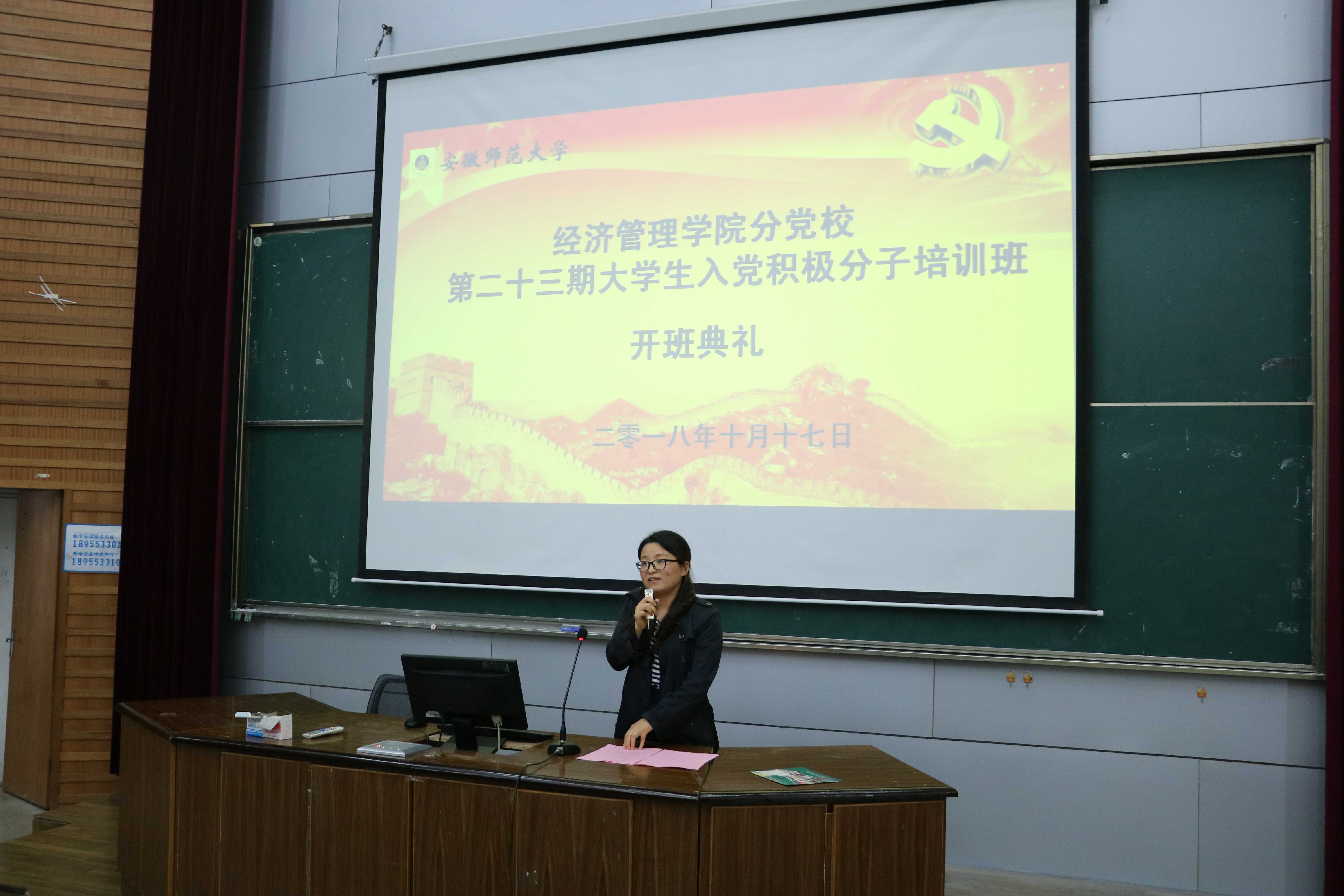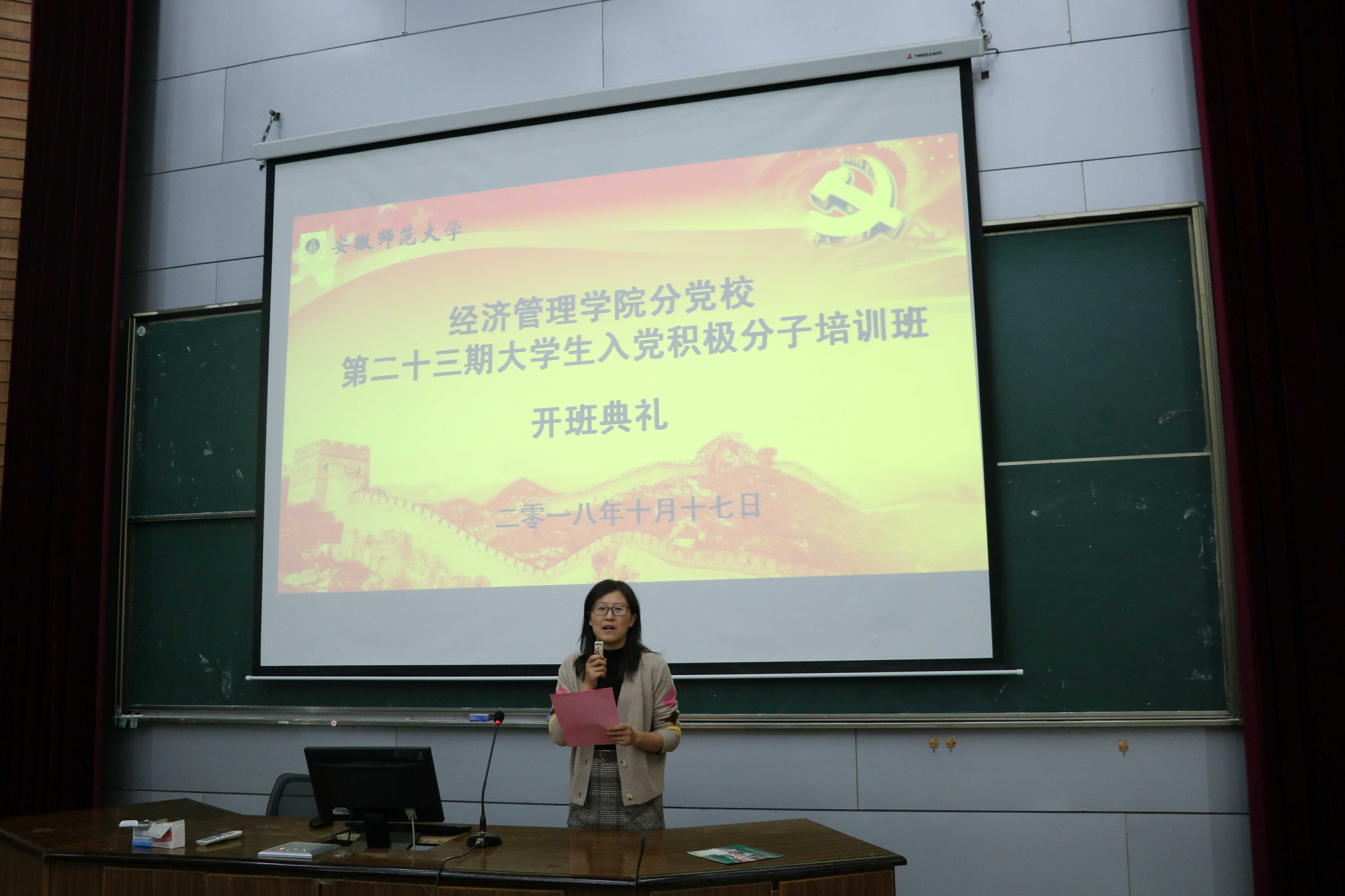 学员代表王吉慧代表全体培训班学员郑重承诺:按时上课,在课上认真做好笔记,课后及时总结自己在思想上的收获;严格要求自己,遵守纪律,积极参与实践活动,树立培训班学员的良好形象;主动完善自己,提升党性修养,端正入党动机,逐步向党组织靠拢。