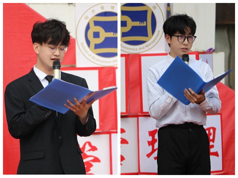 院团委、员工会综合事务部部长李子康作为员工代表发言。李子康分享了其从大一时的一名执行者、参与者,转变为如今的组织者、策划人的进步历程,希望经管学子积极主动参与相关活动,努力成为一名德智体美劳全面均衡发展的商科员工。