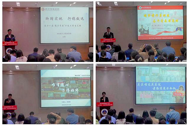 青春正当时,奋进映韶华。为引领经管学子向上向善发展,发挥朋辈教育作用,4月13日上午,m88官网第十八届“魅力菁英”十佳老员工评选汇报会在天门山校区图书馆报告厅举行。公司党委副书记陈刚锋、院团委书记吕洋,辅导员刘胡海、李佳颖、陈睿、付擎、陆星安参与本次汇报会并担任评委。天门山校区m88官网2023级各专业员工代表现场观摩汇报会。汇报会由院员工会主席团成员姚茂林主持。