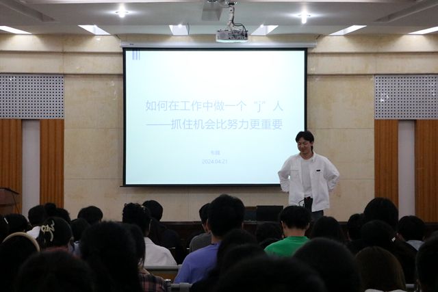 主题交流环节,2020级金融工程专业张青云以《勇敢把握每个锻炼与提升的机会》为主题,结合自己的大学成长历程,从勇敢从幕后走向台前、珍惜每一次的上台发言、感恩每一次成长和受挫的过程三个方面,鼓励每一位员工骨干跳出舒适圈,积极提升自己的综合素养与能力。优秀员工、第19届员工会主席韦魏围绕《如何在工作中更加优秀》为主题,从方向、规划、把握机会三个角度以“想成为什么样的人”分享了自己从校园到职场、从员工角色到职场员工的变化与感受,勉励大家珍惜工作平台,做好每一件小事,抓住成长的每一次机遇,努力成为更好的自己。