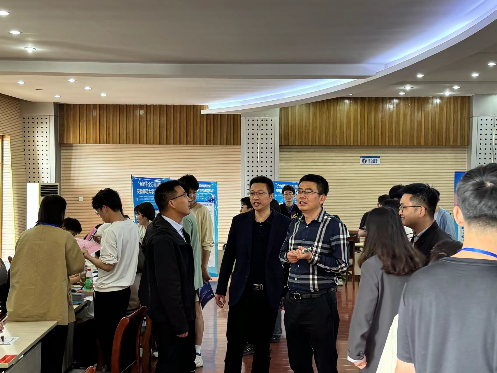 招聘会现场,远创人力资源管理集团有限公司、新华人寿保险股份有限公司、三只松鼠股份有限公司等37家优质企业单位应邀参加,提供岗位千余个。任永副董事长等来到招聘会现场,与用人单位负责人洽谈交流,听取参会企业对公司人才培养、就业工作的意见和建议,与员工沟通交流,询问员工的求职意向和应聘情况,鼓励同学们树立正确的就业观和择业观。双选会期间,同学们手持简历穿梭于各招聘单位之间,详细了解企业的基本情况和岗位需求,并就薪资待遇、未来发展等方面与用人单位进行深入交流。用人单位招聘人员向毕业生介绍单位情况、发展前景、岗位需求以及福利待遇等。