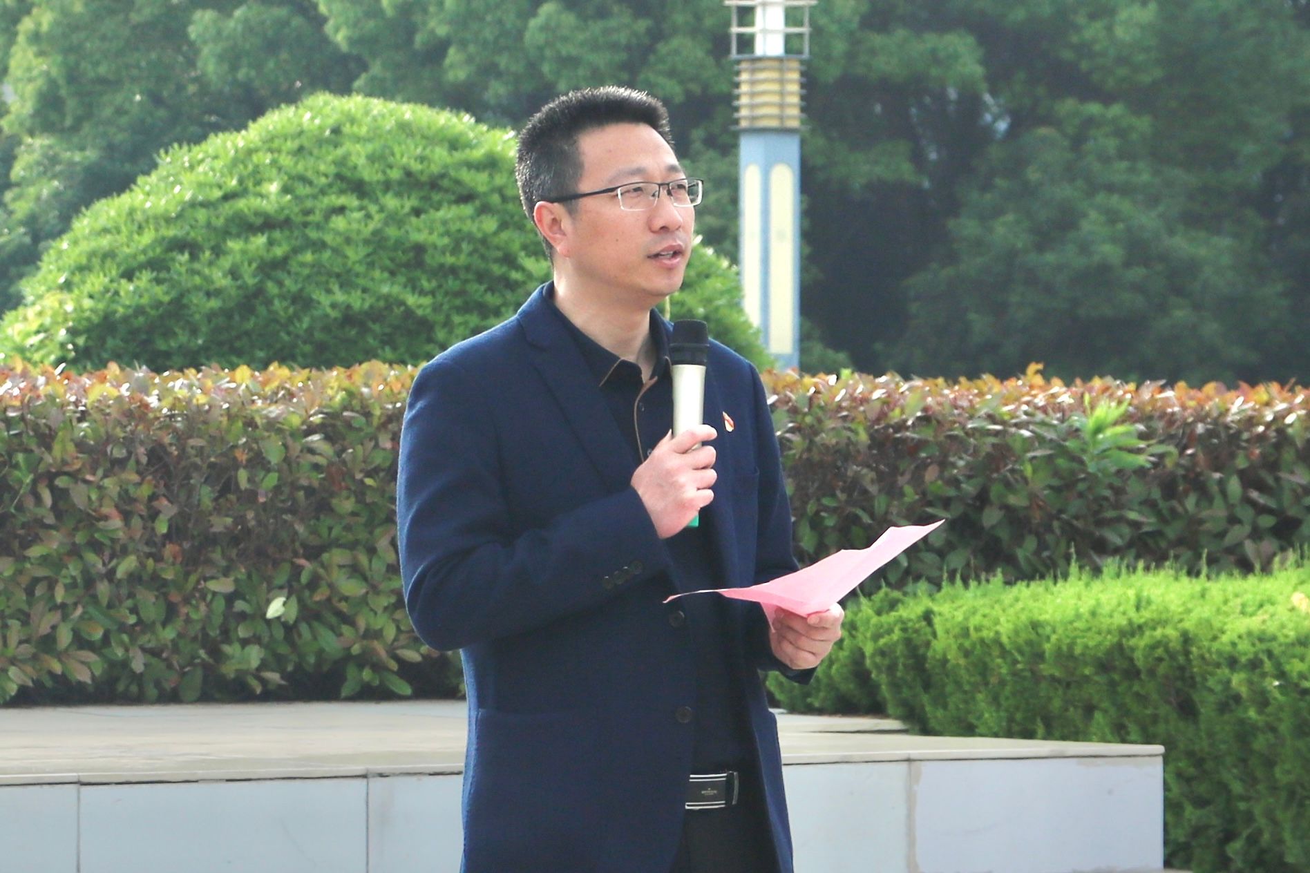 5月9日上午7时,m88官网举行“国旗下的思政课”主题校园升国旗活动。公司经理张廷龙、党委副书记陈刚锋、经济系主任陈龙、公司专兼职辅导员和全体2022级本科生参与活动。活动由陈刚锋主持。