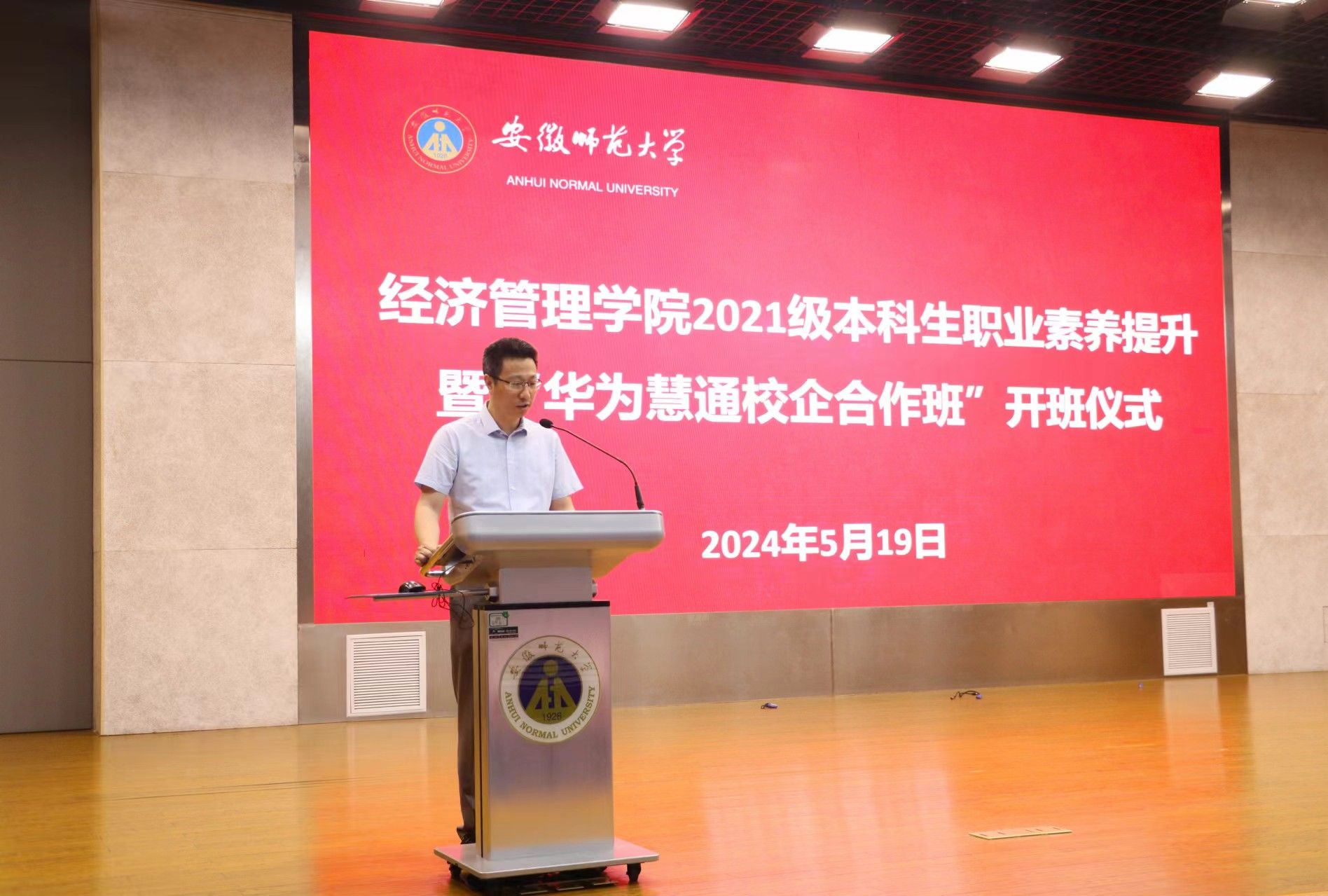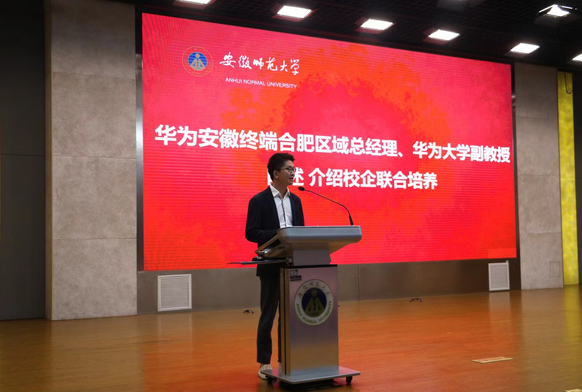 华为安徽终端合肥区域总经理、华为大学副教授陈述围绕企业文化、企业发展介绍了华为安徽终端的基本情况,表示华为慧通一直致力于推动产业转型升级,需要大量高素质、高技能的人才支撑。此次校企合作前置培训周期计划,旨在让同学们更早地接触并了解就业市场,为未来的职业生涯做好充分准备,也为华为慧通提前发现和培养具备潜力的人才注入新的活力。