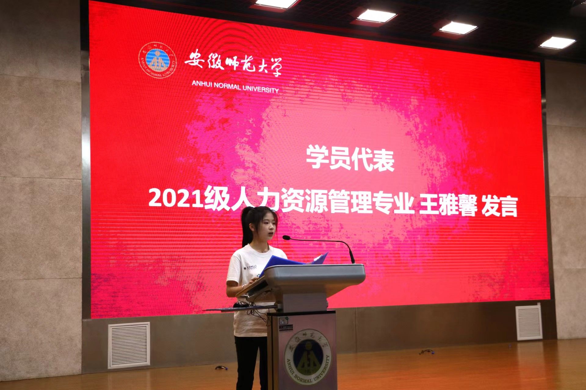 2021级人力资源管理专业王雅馨作为学员代表发言。她表示将借助校企共同搭建的平台,珍惜学习机会,积极参与教学实践活动,并倡议校企合作班同学要勇敢迈出自己的舒适区,提升自己的专业素养和综合能力,在实习中与企业一起成长,为实现自己的梦想奋斗不止,为区域社会经济发展贡献自己的力量。
