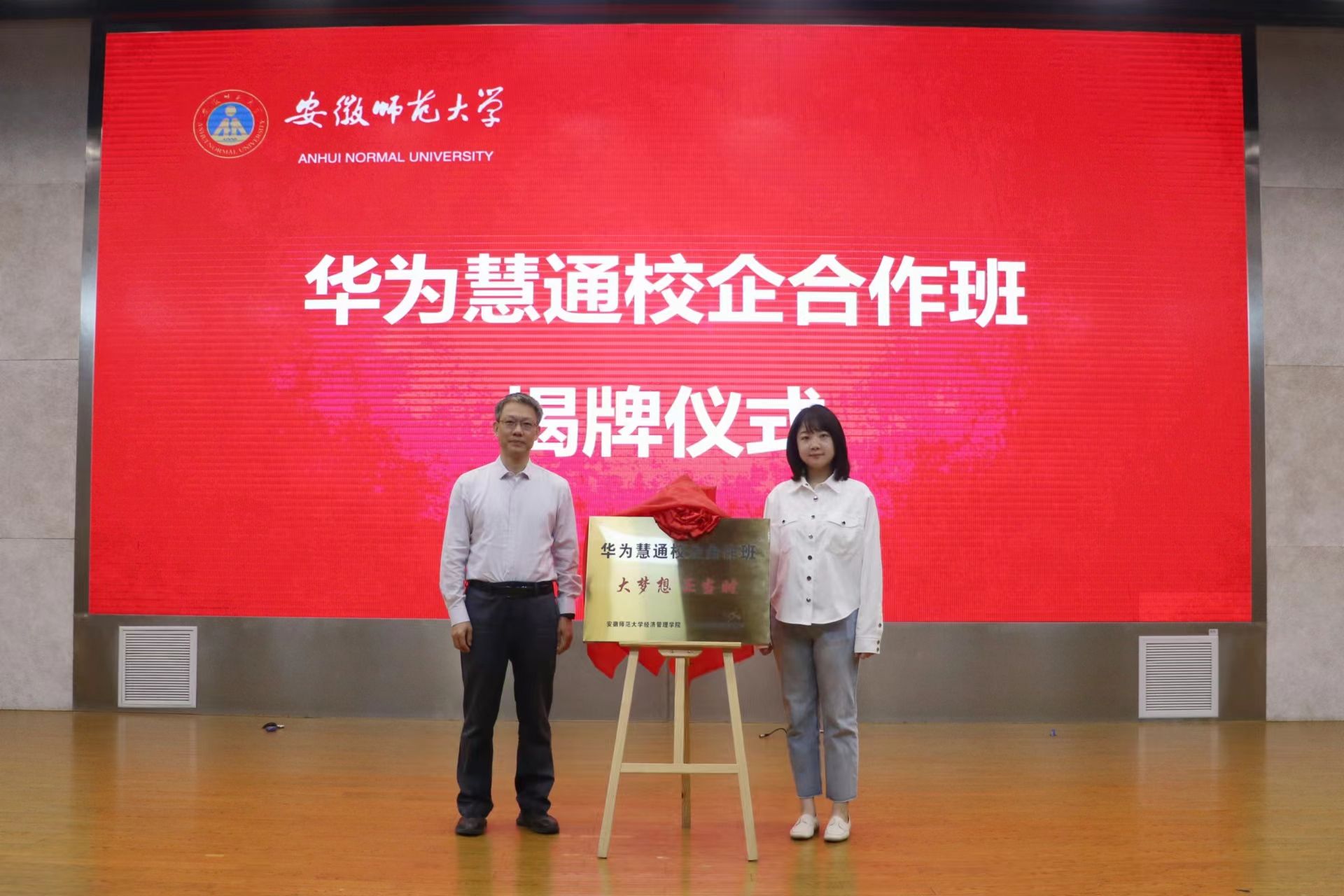 校教务处处长崔光磊与华为大中华区人力资源总监姚佳为本次校企合作开班仪式揭牌。