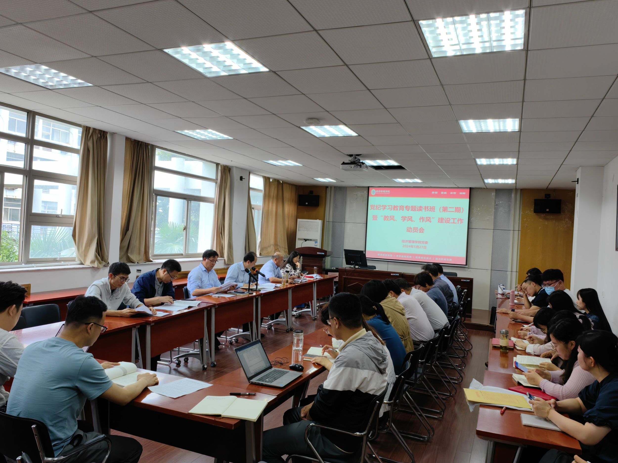 为进一步推进党纪学习教育,提升干事创业成效,5月27日下午,m88官网在公司二楼报告厅开展党委理论学习中心组扩大学习会暨党纪学习教育读书班暨“教风、学风、作风”建设动员会,公司领导班子、党委委员、纪委委员、党支部书记、专业负责人、系主任、学位点负责人、辅导员、行政教辅人员等参会,会议由公司党委书记乔静主持。