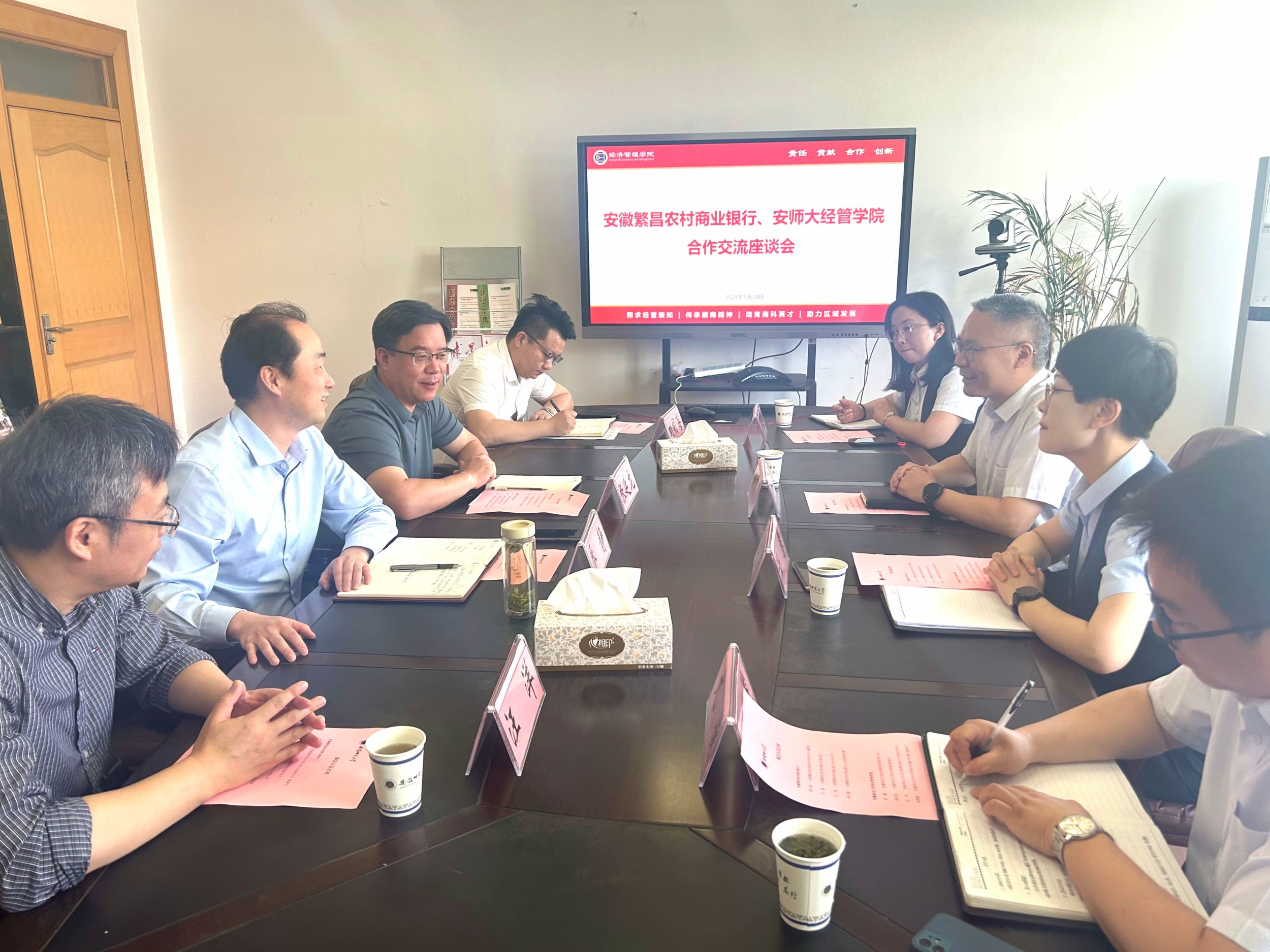 5月29日上午,m88官网与安徽繁昌农村商业银行在公司四楼会议室举行合作交流座谈会。安徽繁昌农村商业银行党委书记、董事长戴小波,党委委员、纪委书记任慧,办公室主任尤俊,人力资源部经理俞月霞,公司党委书记乔静、经理张廷龙、会计专硕点负责人汪洋、辅导员刘胡海一同参加了座谈会。座谈会由乔静主持。