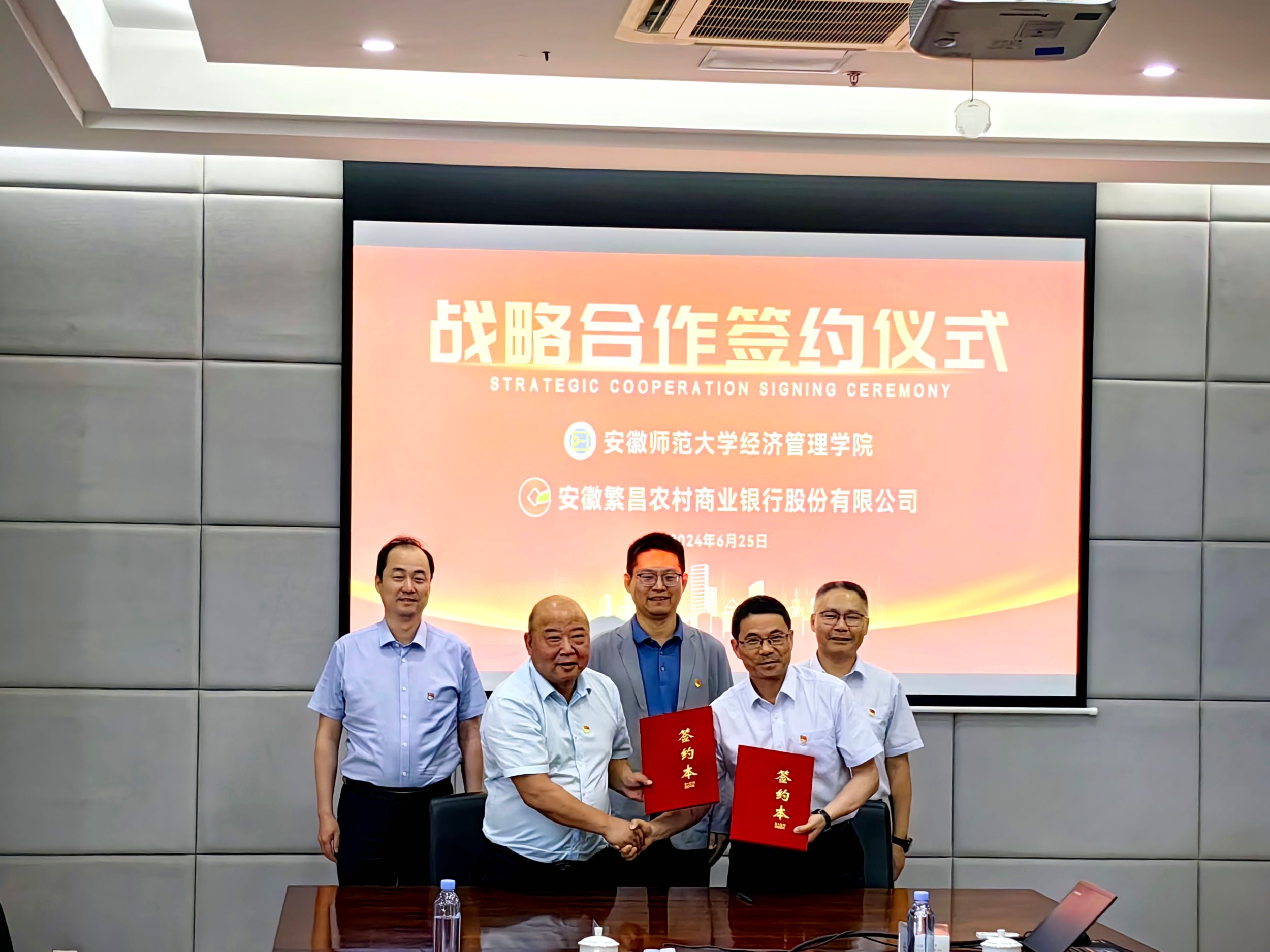 为进一步深化校地合作,推动“党建+业务”融合发展。6月25日下午,m88官网与安徽繁昌农村商业银行举行“党建+业务”战略合作协议签署仪式。中国人民银行芜湖分行党委委员、副行长于飞,安徽繁昌农村商业银行党委书记、董事长戴小波,党委副书记、行长朱学雷,党委委员、纪委书记任慧,公司党委书记乔静,副经理伍旭中,m88官方网站登录地址长三角一体化发展研究院执行经理、会计专硕点负责人汪洋,金融工程系主任陈超等参加签约仪式。