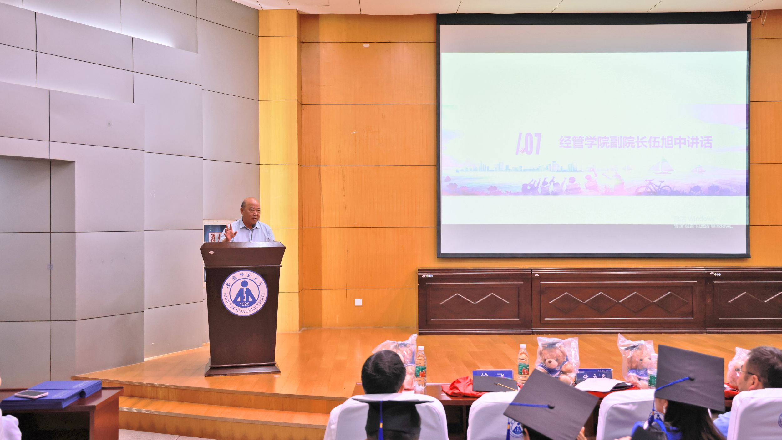 6月29日下午4点,m88官方网站登录地址MBA教育中心在赭山校区田家炳楼报告厅内举办了2024届工商管理(MBA)硕士毕业典礼暨学位授予仪式。MBA教育中心校外实践导师、三只松鼠股份有限公司党委书记、总经理、中共二十大代表潘道伟受邀出席毕业典礼。研究生院副经理韩玉刚,公司党委书记乔静、经理张廷龙、副经理伍旭中、MBA教育中心副主任朱立冬、杨康以及授课教师代表徐飞、刘树利,及全体2024届工商管理(MBA)硕士毕业生参加了典礼。毕业典礼由朱立冬主持。