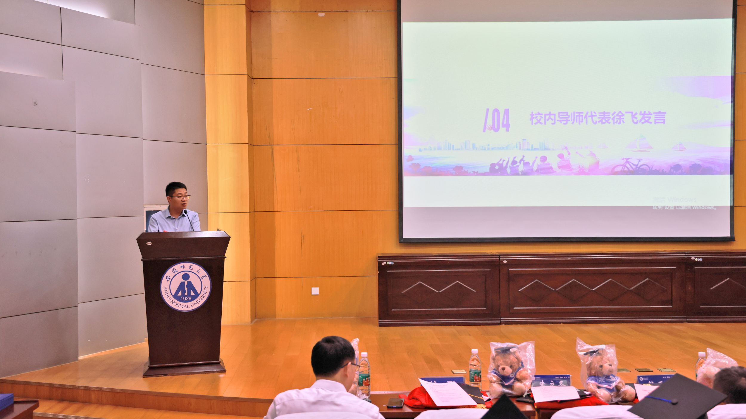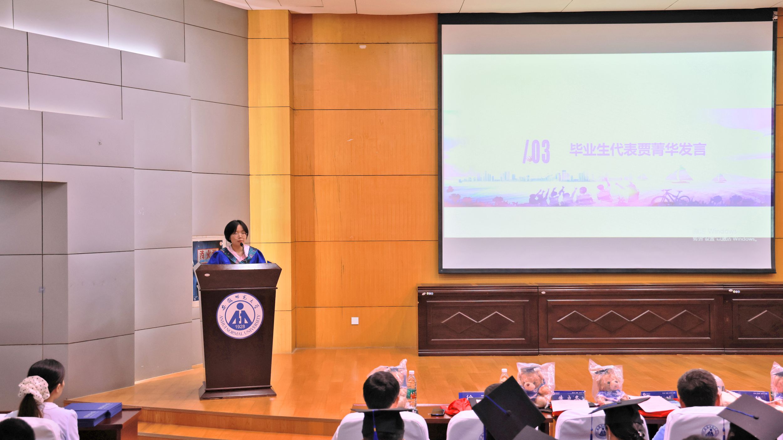 典礼开始前,朱立冬向各位毕业生介绍了本次到场的嘉宾和会议议程。伴随着庄严的国歌声,全体师生肃然起敬,毕业典礼正式拉开序幕。