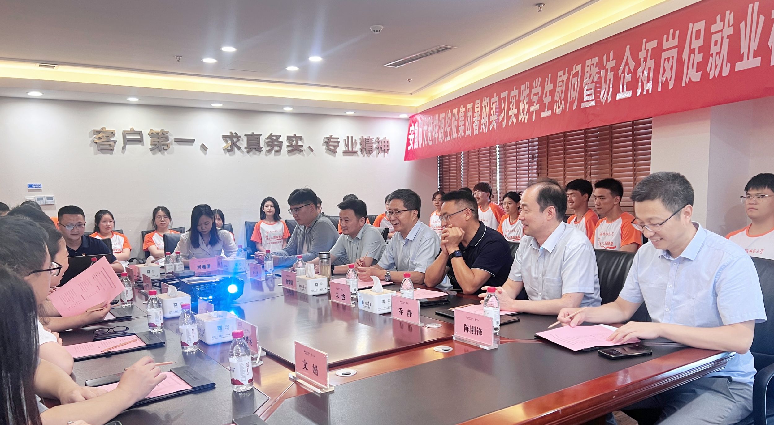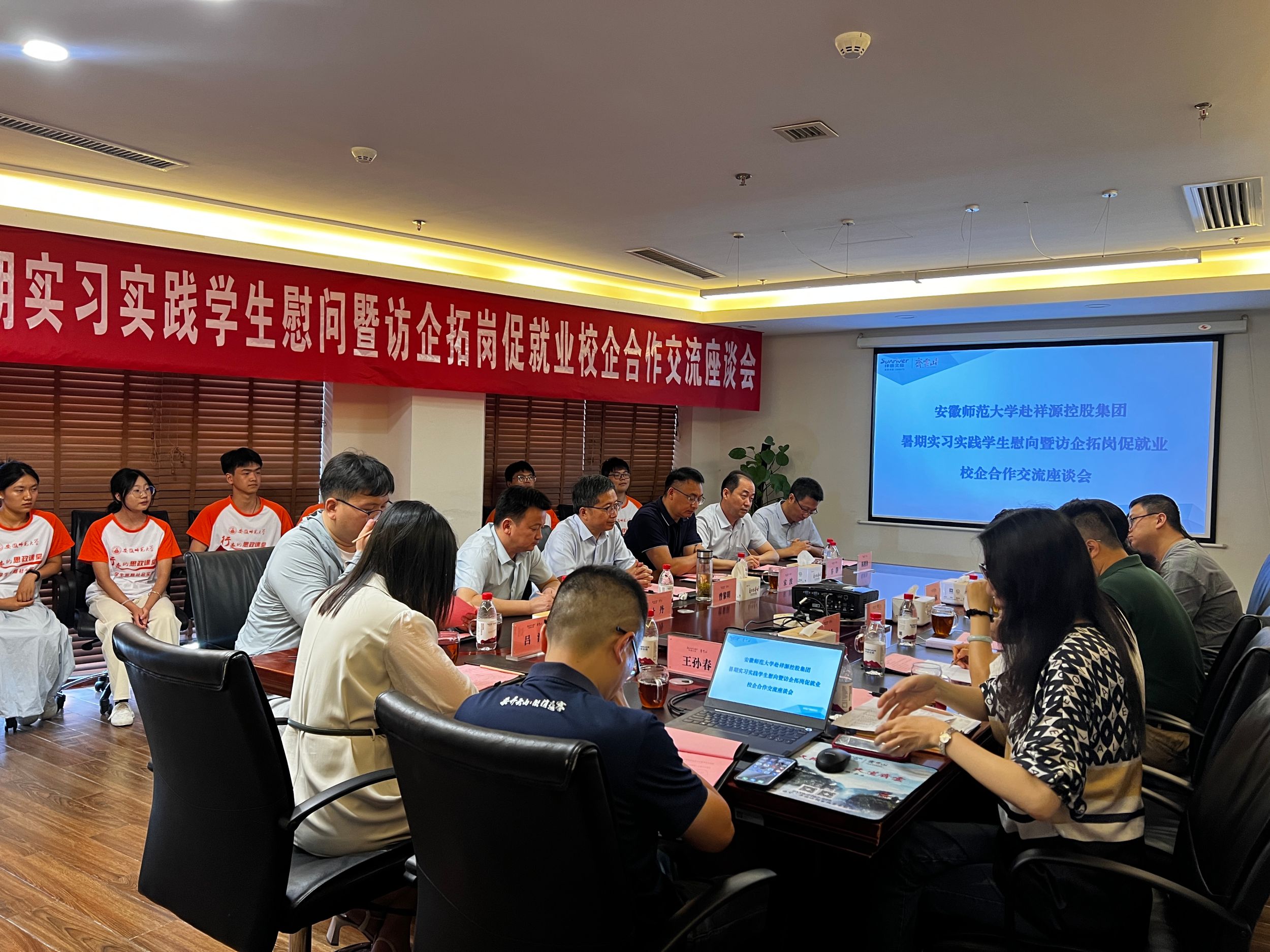 7月19日,公司党委常委、副董事长曾黎明带队赴祥源控股集团开展“访企拓岗促就业”专项行动,并看望慰问m88官网暑期实习实践员工。校社会合作处处长宋波、总务处党委书记叶丹、公司党委书记乔静、副书记陈刚锋等陪同。祥源控股集团助理总裁方言,集团顾问林淑,祥源集团、交建股份、祥源物业、祥源茶叶人力资源部门负责人,齐云山旅游股份有限公司主要负责人等参加有关活动。