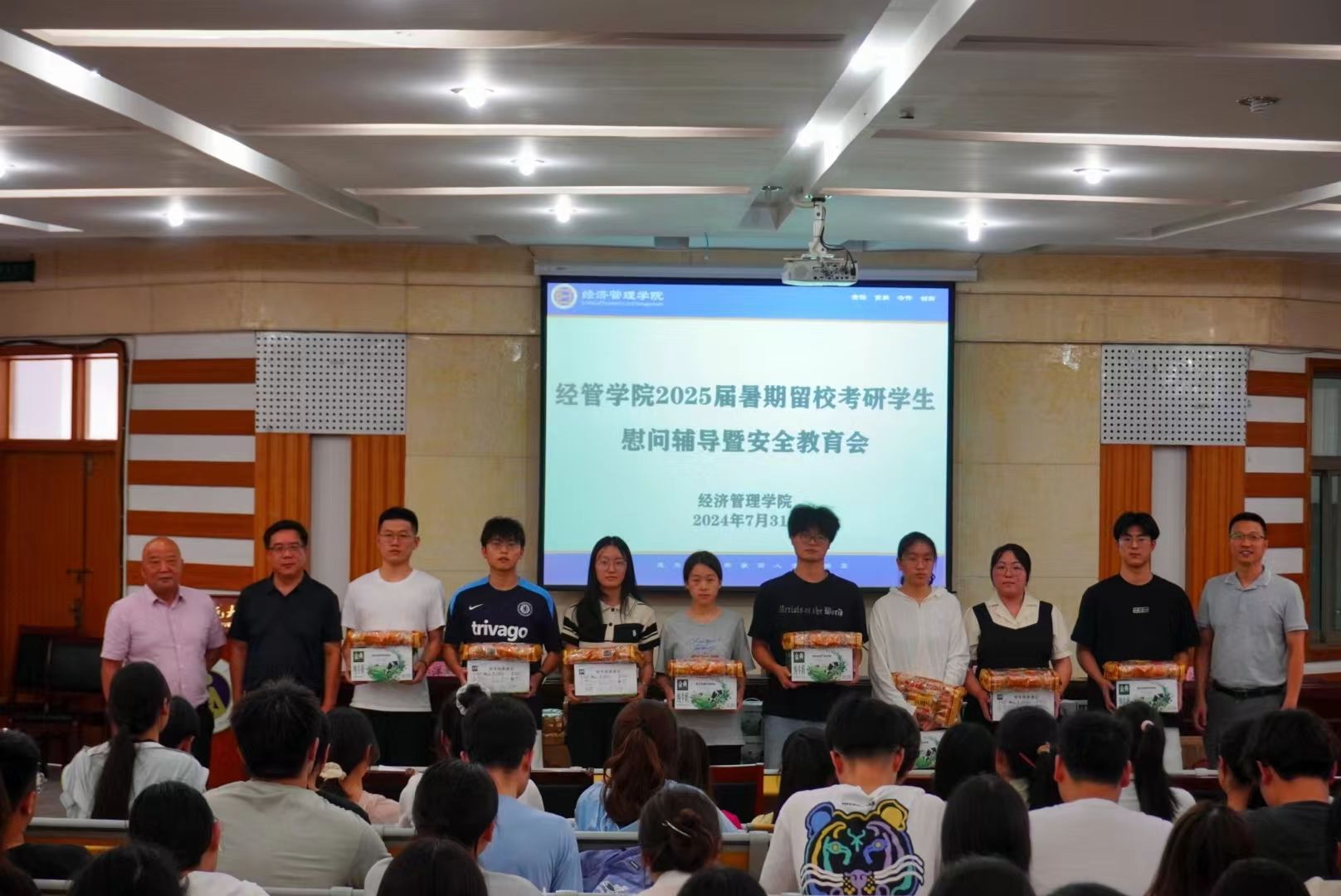 公司领导老师为留校考研员工发放牛奶、面包等慰问品,叮嘱同学们注意防暑降温,公司将为同学们提供全过程指导和帮助。