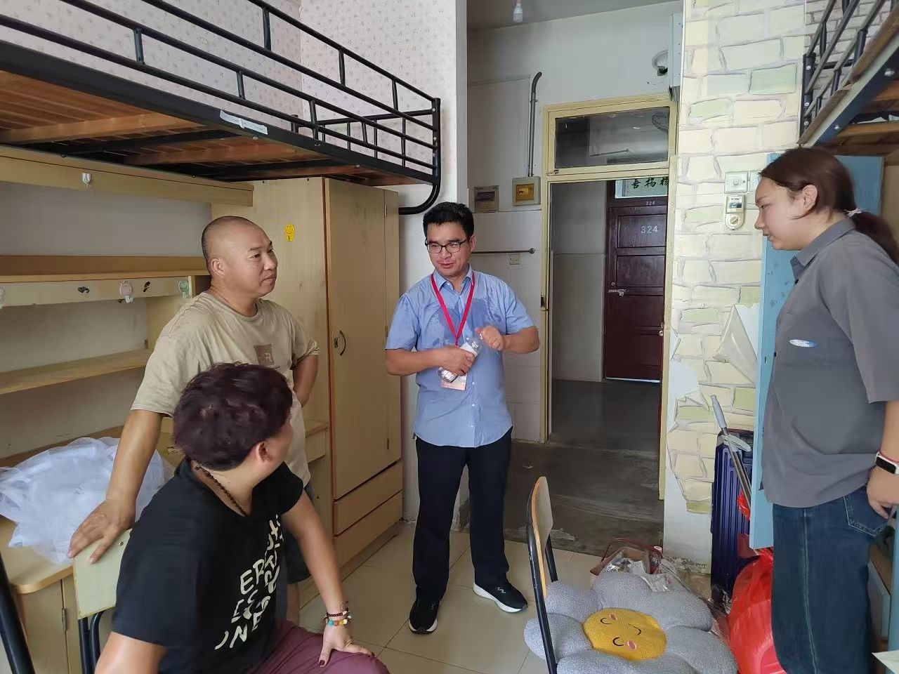 公司领导在新生辅导员的陪同下,前往2024级新生宿舍进行实地走访慰问。领导们深入宿舍,贴心的问候新生并给出未来老员工活的切实建议,也与同学们交流了当下入校的心情,鼓励他们追寻理想,树立目标,过精彩的老员工活。