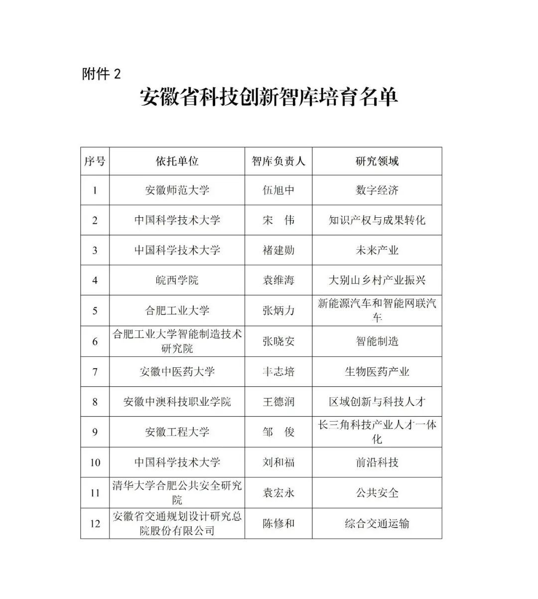 据悉,为充分发挥科技创新智库智力支撑功能,为党委和政府提供高质量决策咨询成果,安徽省科技厅面向高校、科研院所、企业、社会组织及国内外知名决策咨询研究机构开展了智库申报建设工作。该类智库以服务安徽科技创新重大决策为使命,围绕前瞻性、全局性、战略性问题开展深入研究,为重大科技发展战略规划、政策法规、产业创新、区域创新、技术预测、科技人才、科技金融、科技治理等提供研究支撑、决策咨询和综合服务,本次公布的为我省第二批拟培育发展单位,含10家建设单位和12家培育单位。