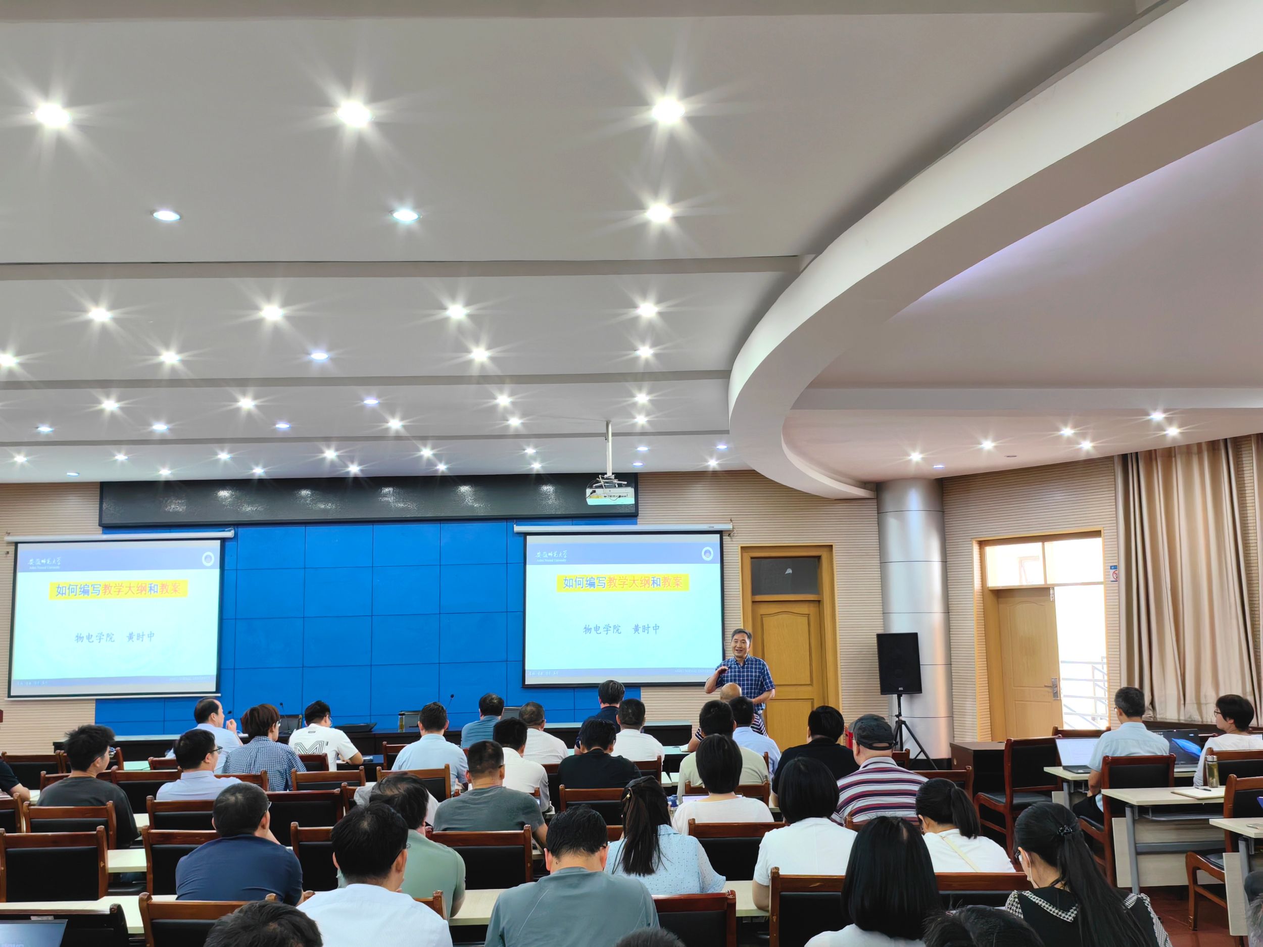学习会第一阶段,校教学督导团团长黄时中教授结合全国教育大会精神,立足教师的教书育人职责使命,以《如何编写教学大纲和教案》为全体教职工做专题辅导,并现场进行了微课教学示范展示。黄时中从理论和实践两个方面,详细介绍了教学大纲和教案的编写规范和要求,分享了自己教书育人的做法和体会,他鼓励教师要兼顾教学和科研,以教育家精神认真对待课堂教学,站稳讲台上好课,成为热爱教育、精于教学、深受欢迎的好老师。