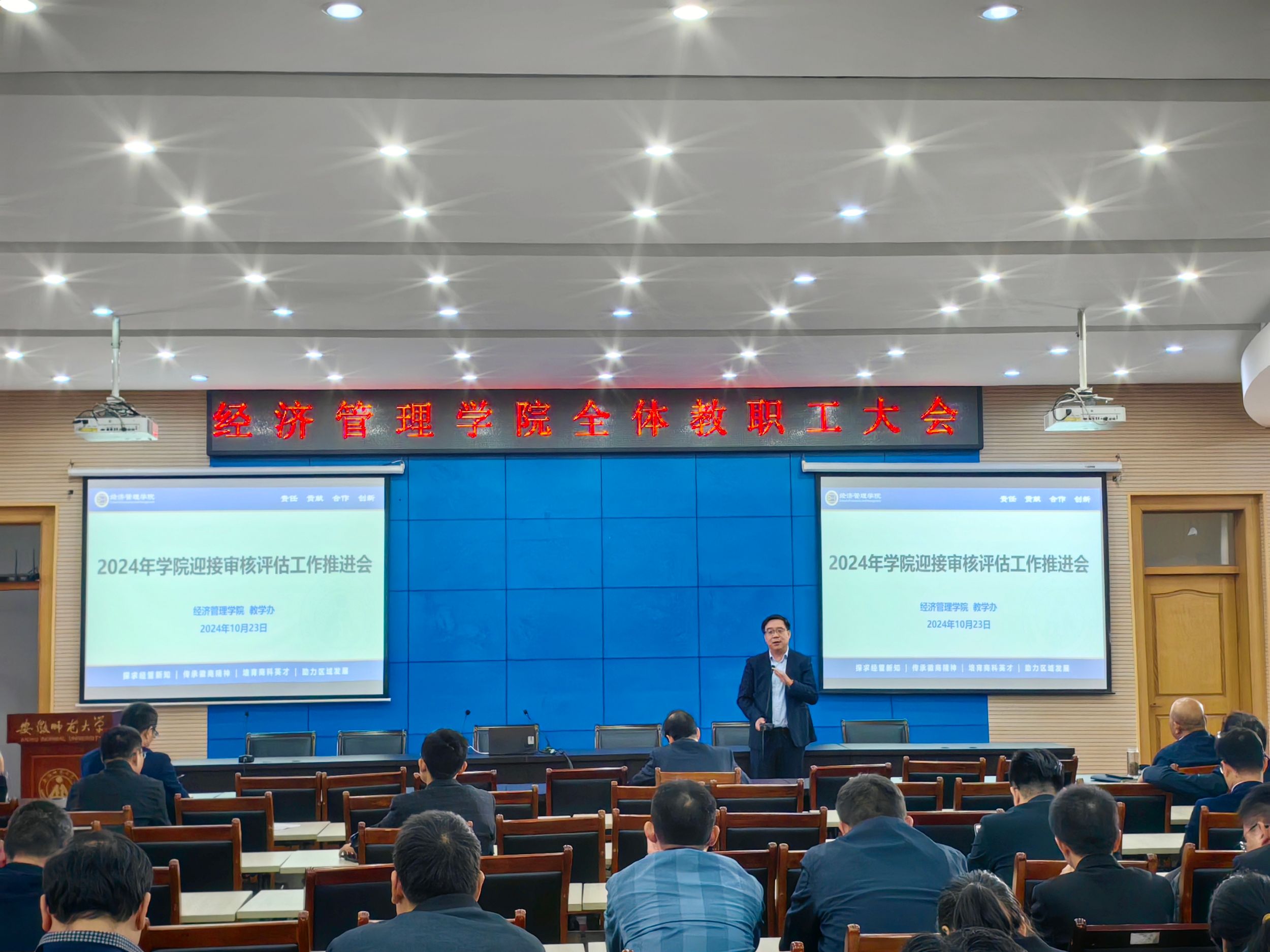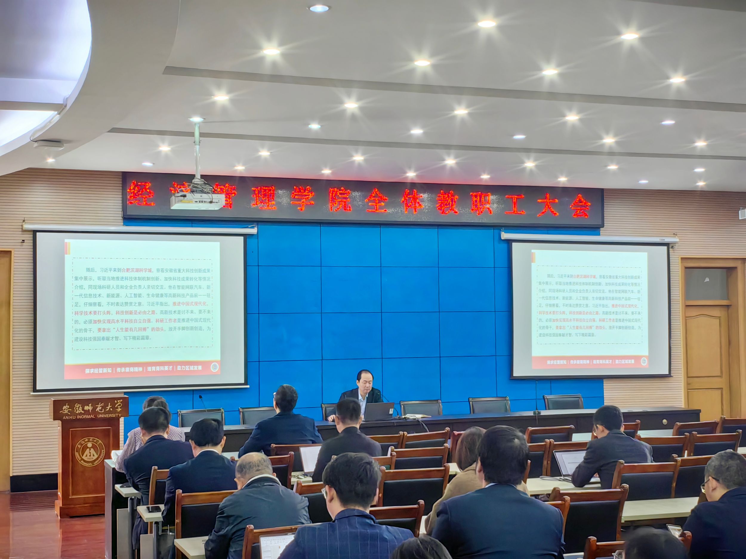 10月23日下午,m88官网在版权所有 m88官网-登录入口会议中心第三报告厅召开全体教职工大会暨政治理论学习会,专题学习习近平总书记考察安徽重要讲话精神。m88官网全体教职工参加会议,会议由经理张廷龙主持。