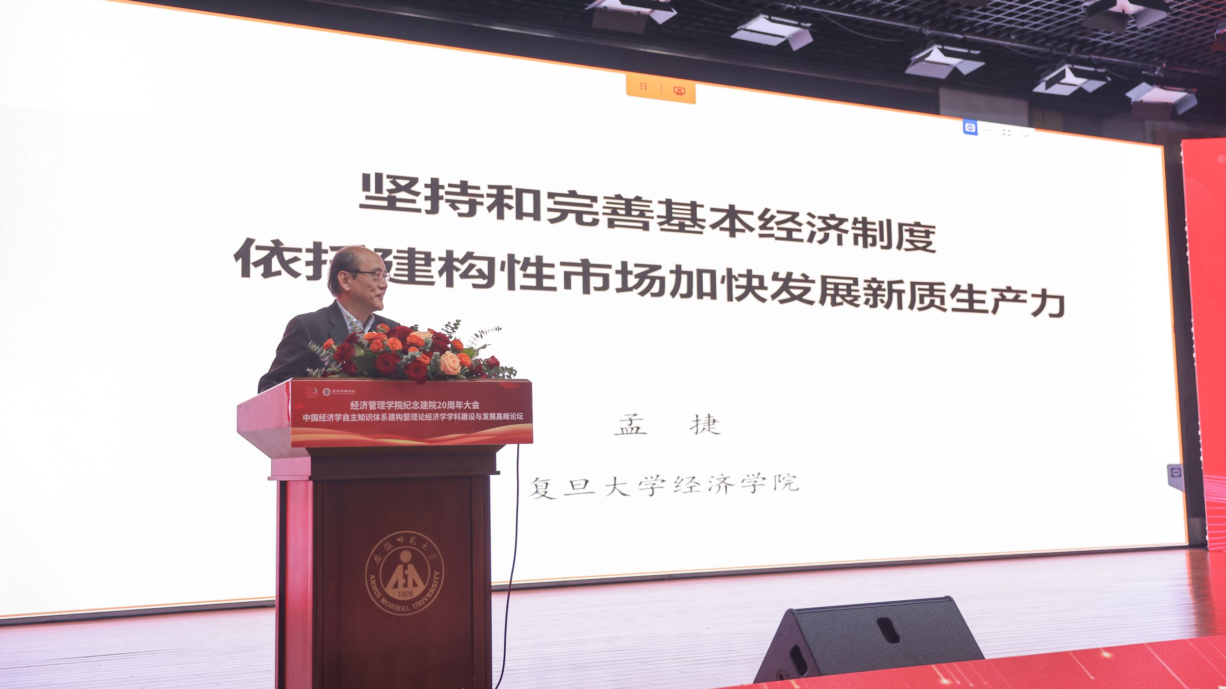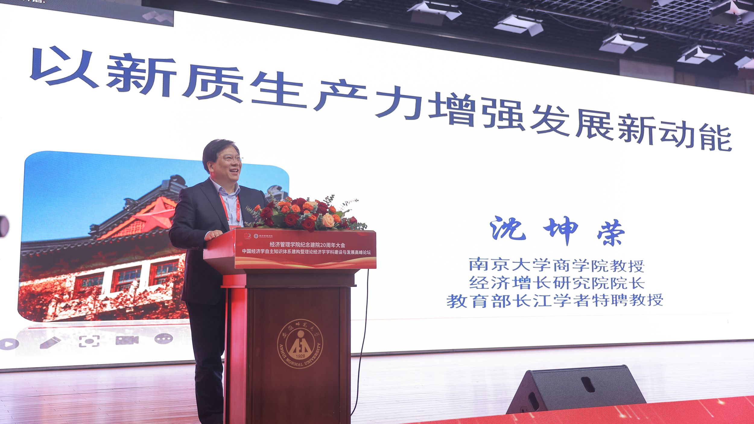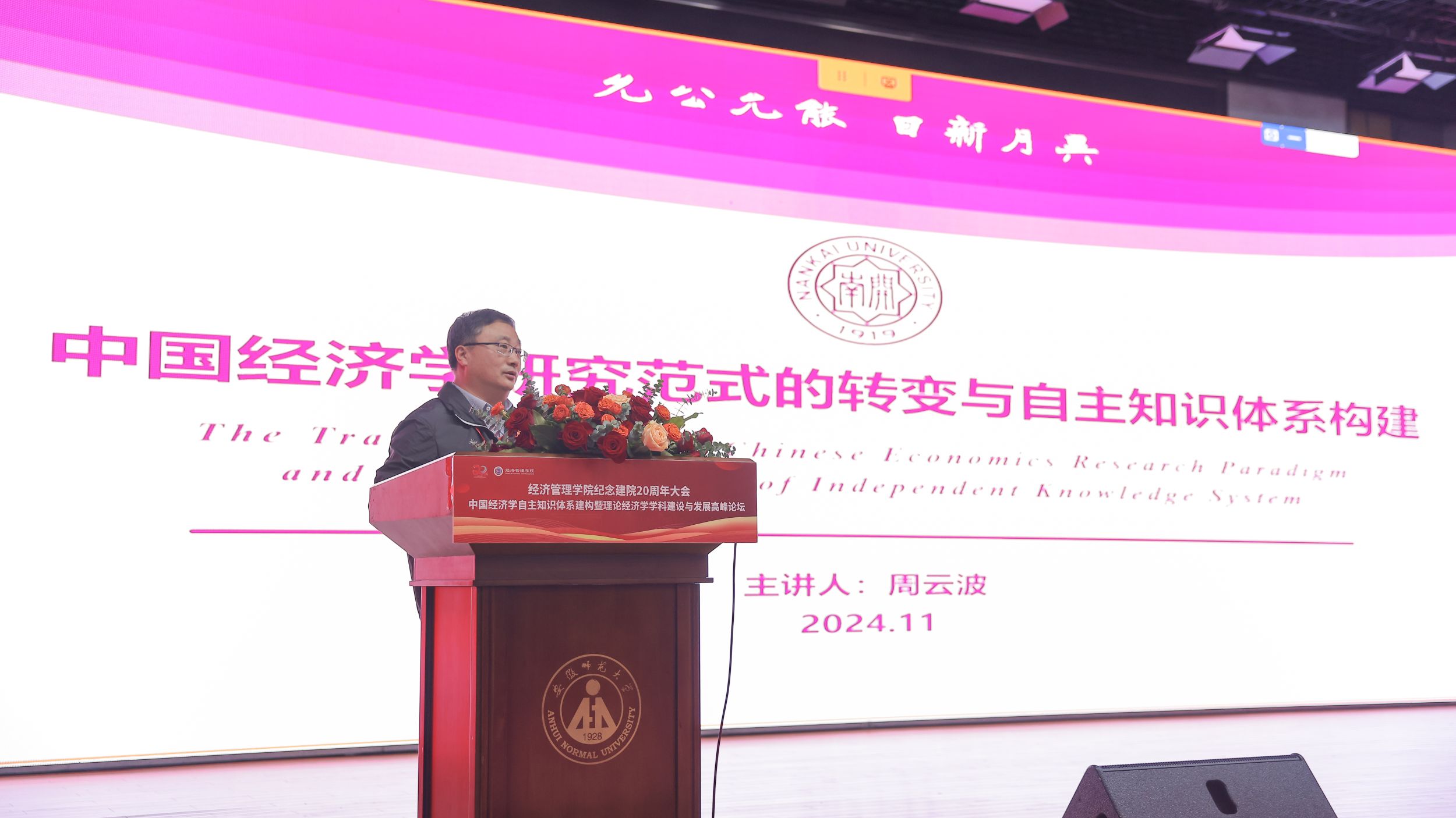 赵振华教授作了题为“关于新质生产力的几个基本问题”的主旨报告,他全面阐述了新质生产力理论对推进中国式现代化、加快我国经济高质量发展的重大意义。沈坤荣教授作了题为“以新质生产力增强发展新动能”的主旨报告,他指出宏观治理应根据经济发展阶段演变进行适应性调整,以新质生产力推进高质量发展,重中之重是统筹做好科技创新和产业创新。宋敏教授围绕金融体系服务企业创新的根本逻辑和金融工具助力科技创新发展,以“金融支持创新发展”为题作了主旨报告。程霖教授作了题为“经济史学研究与中国自主经济学知识体系构建”的主旨报告,论述了加强经济史学团队建设、建构中国自主经济学知识体系面临的机遇和挑战。周云波教授和孟捷教授分别作了题为“中国经济学研究范式的转变与自主知识体系构建”“坚持和完善基本经济制度 依托建构性市场加快发展新质生产力”的主题报告,分析了构建中国经济学自主知识体系要扎根中国经济发展与经济改革的现实,提出了建构性市场是国家经济活动规律和资本运动规律结合的产物。